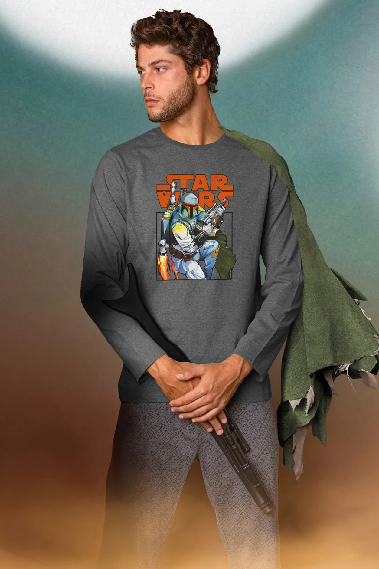 Admas Pijama largo Boba Fett para hombre gris Hot