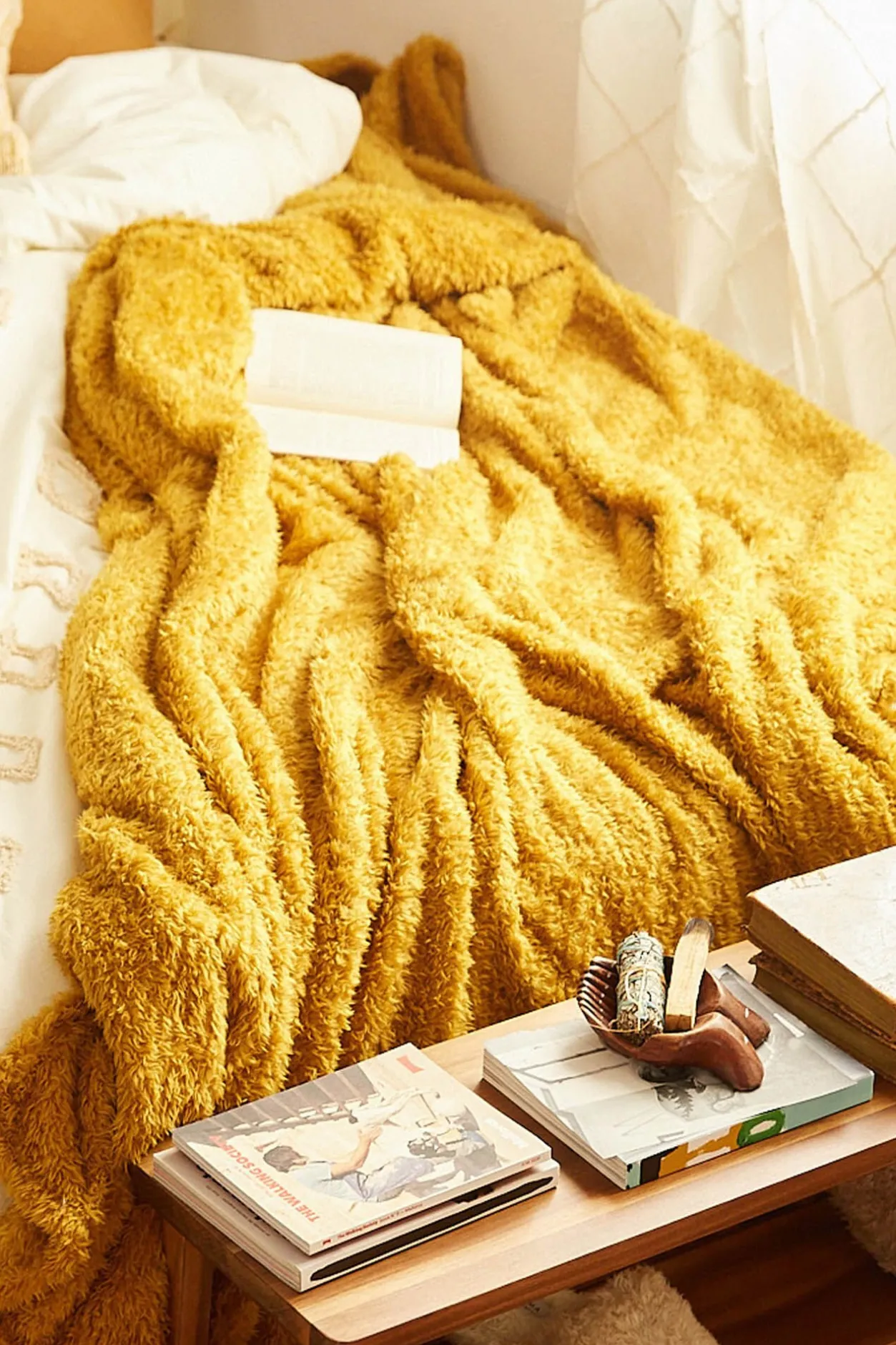 -Añade calidez y estilo a tu hogar con el plaid mostaza Tedy.