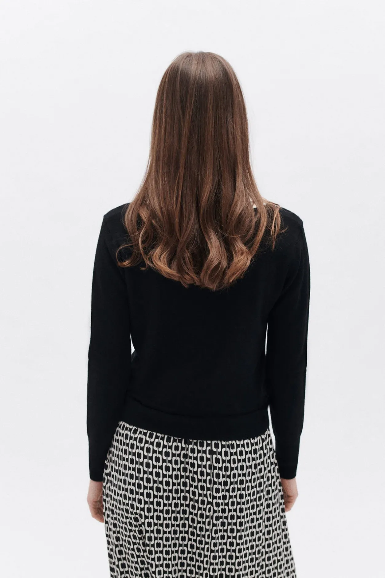 – Jersey de cuello de pico en contraste y corte recto