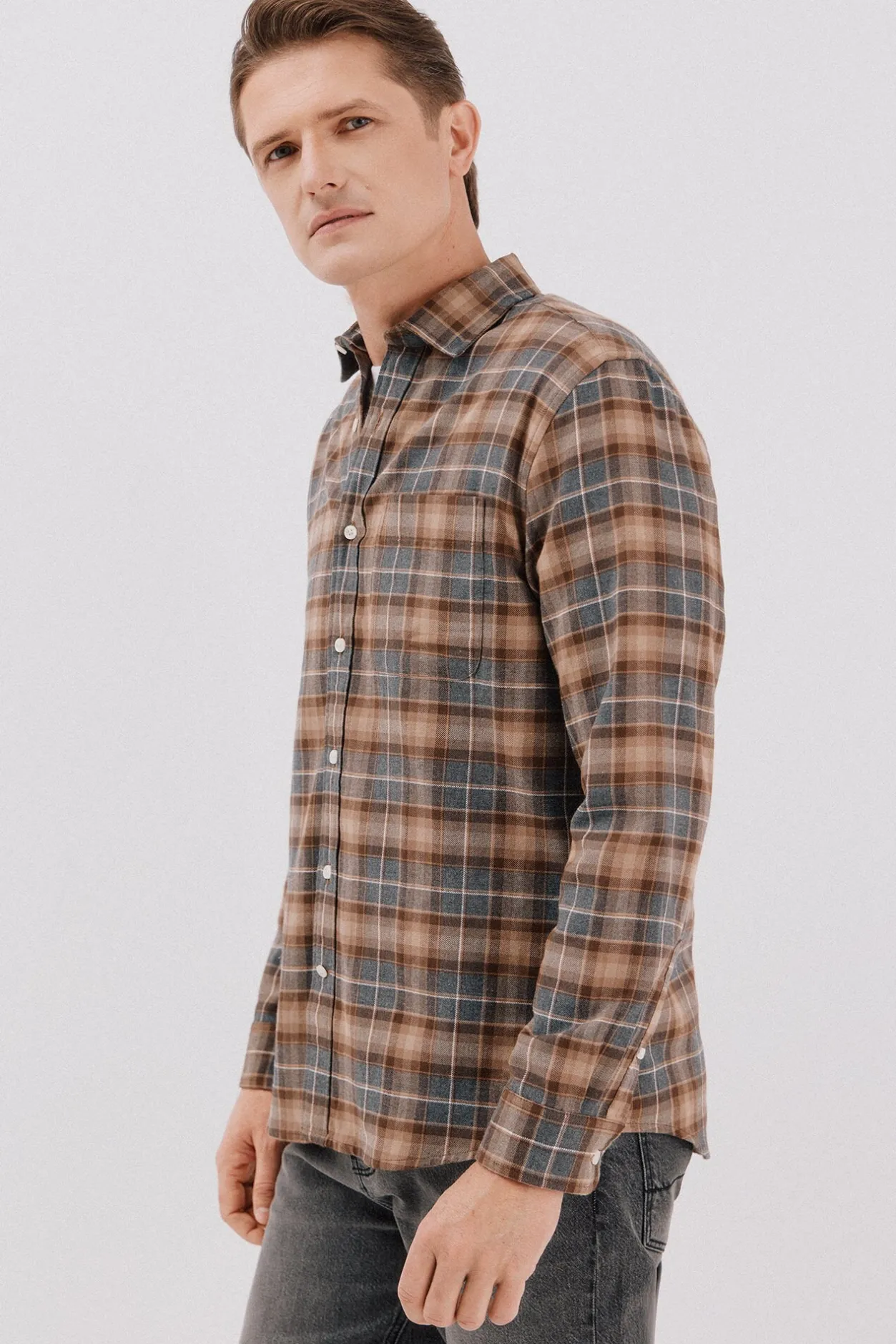 -Cuello soft sin botonesbolsillo en el pecho