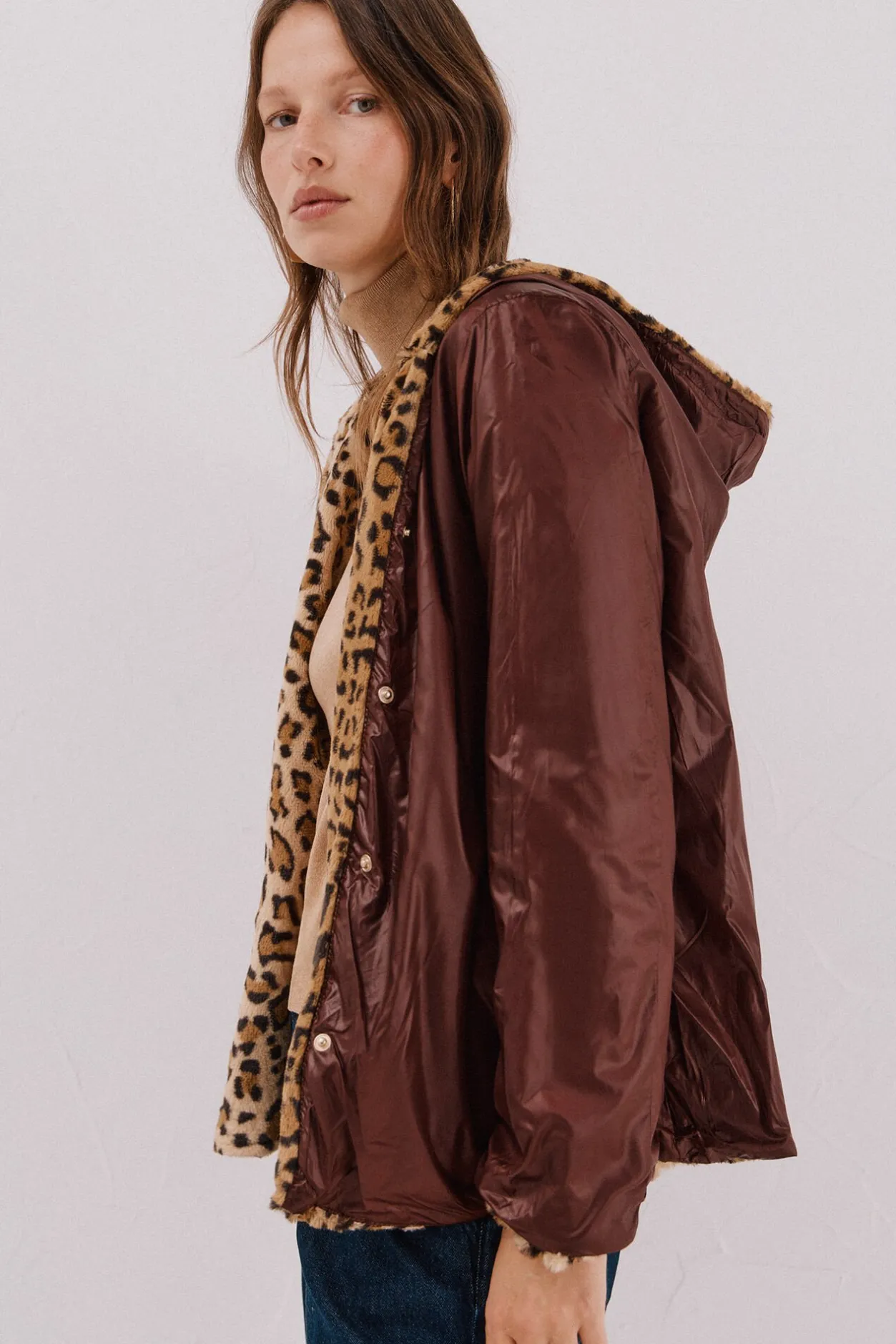 – Combina calidad ligera de efecto pelo y tejido técnico.