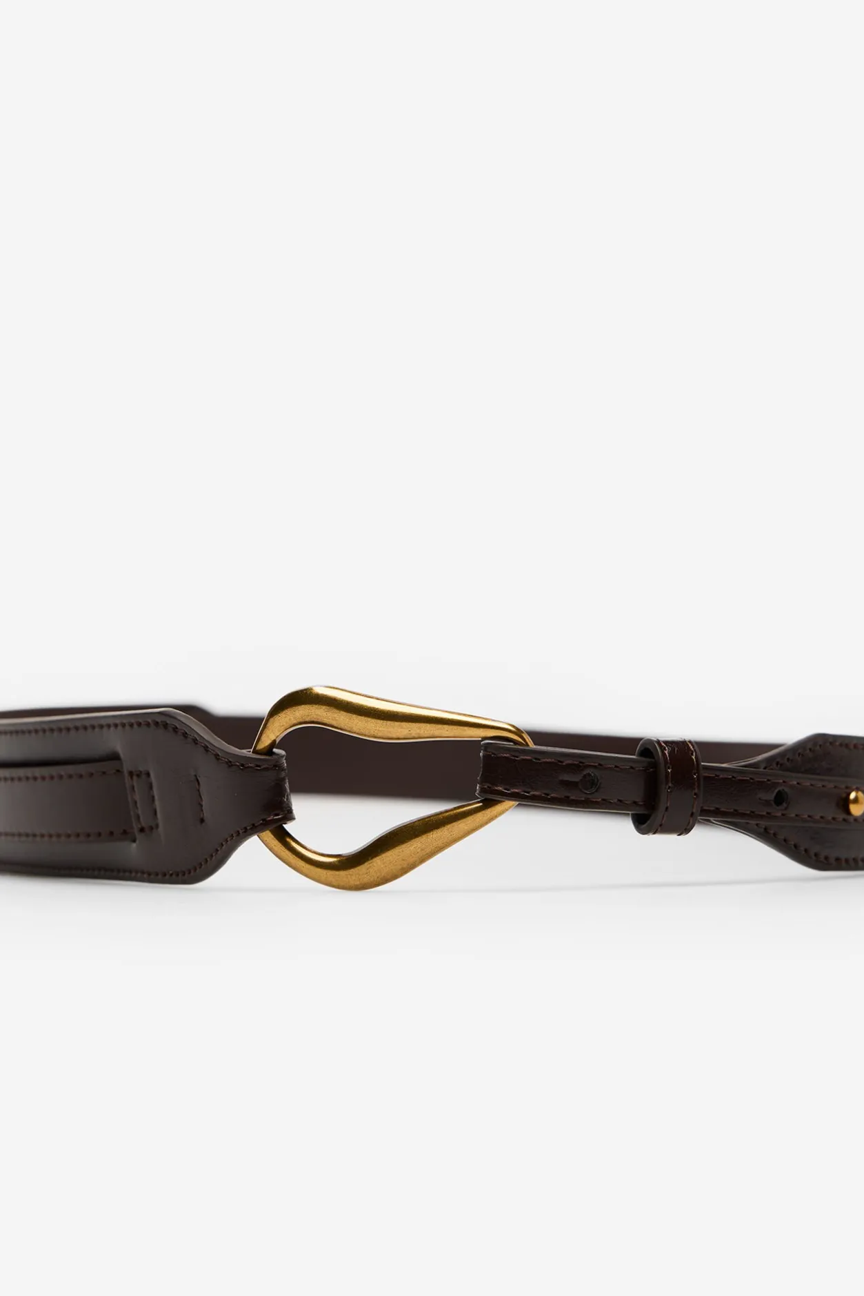 – Hebilla con forma de estribo y cierre de chupete metálicos en dorado viejo