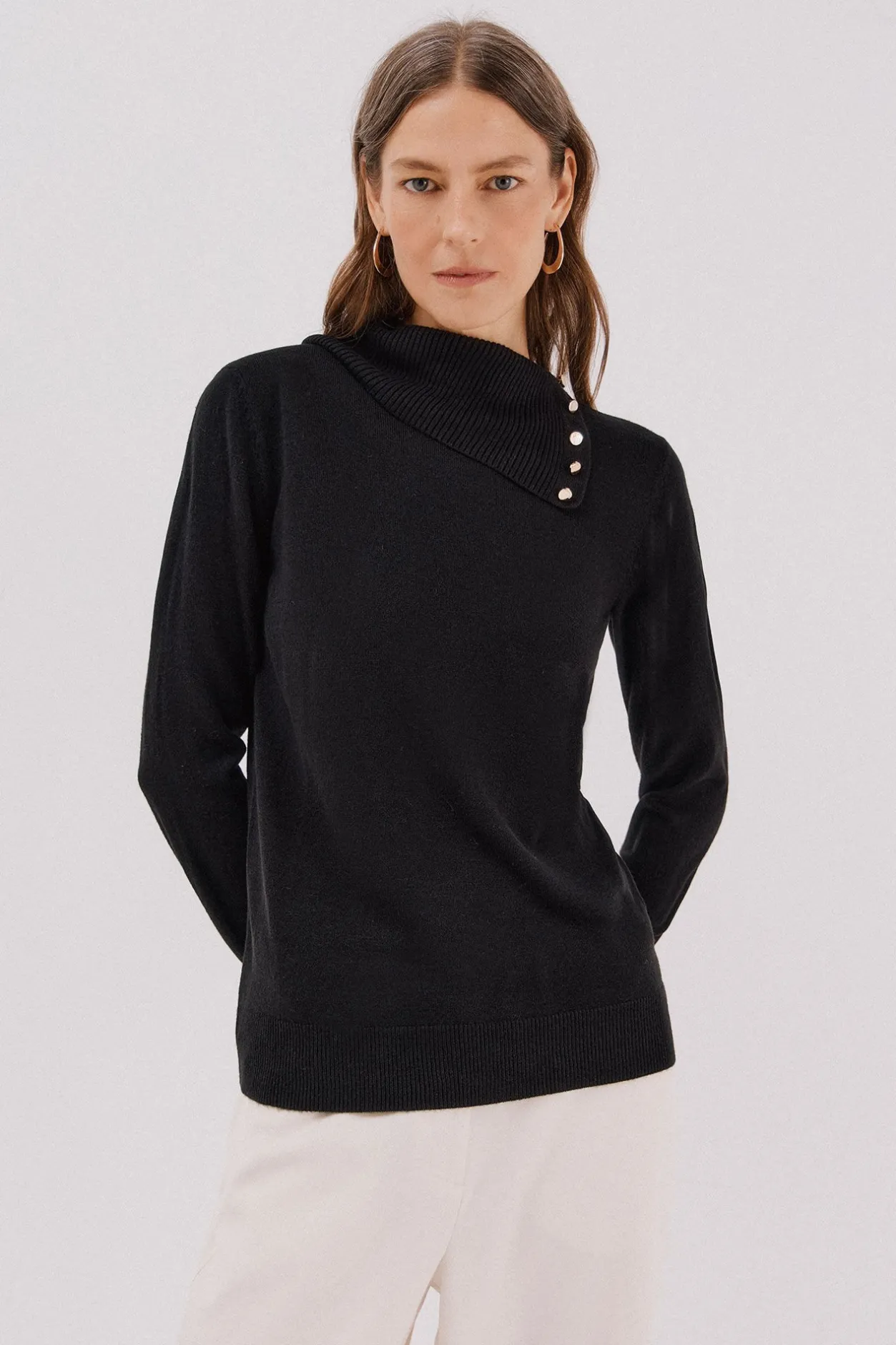 Cortefiel Jersey cuello botones Negro Clearance