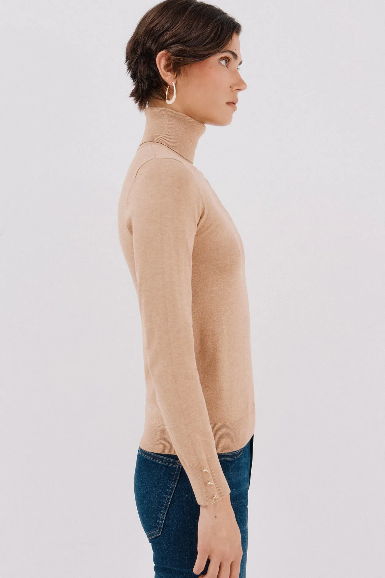 Cortefiel Jersey cuello vuelto Beige Clearance