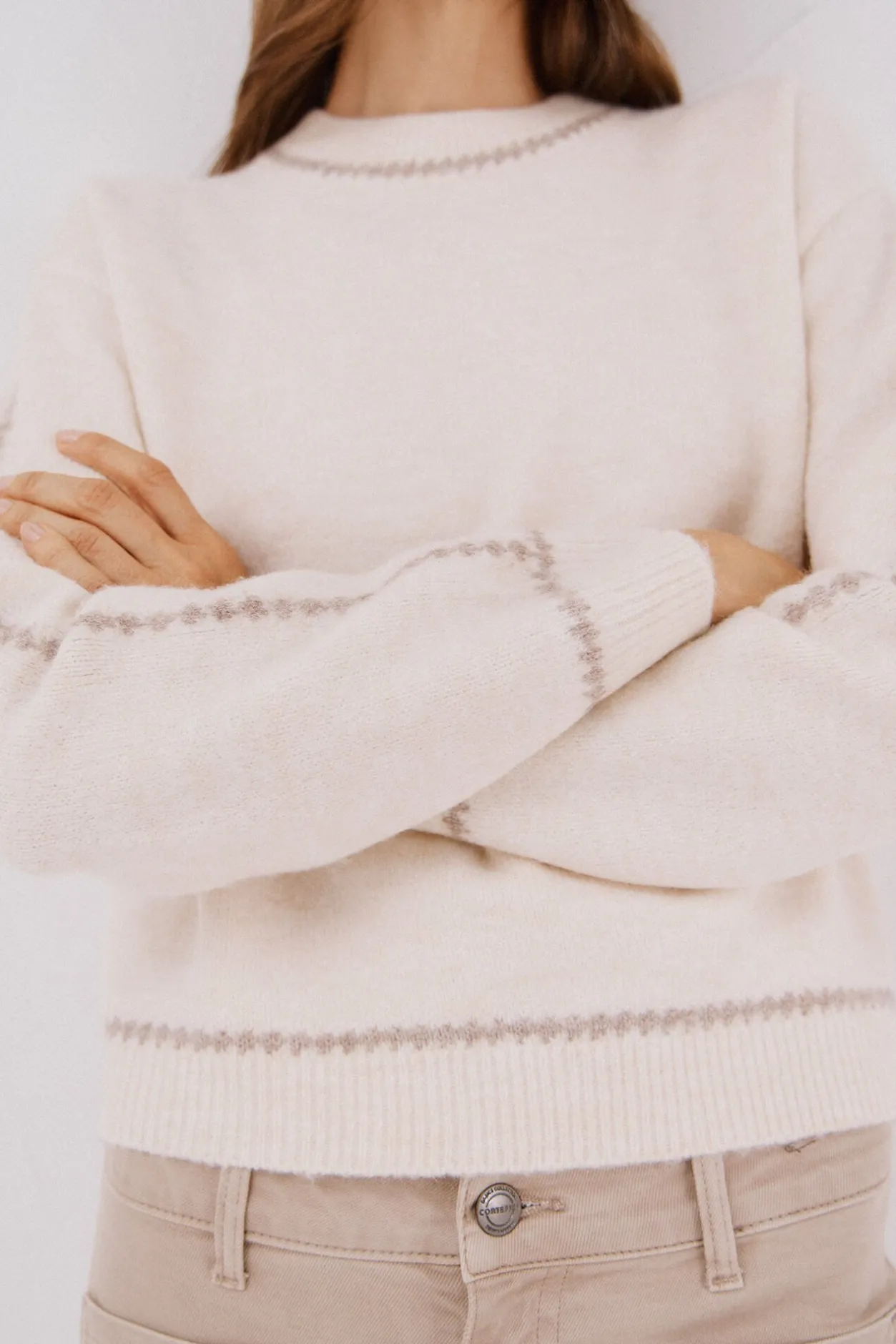 Cortefiel Jersey Perkins contrastes Marfil Clearance