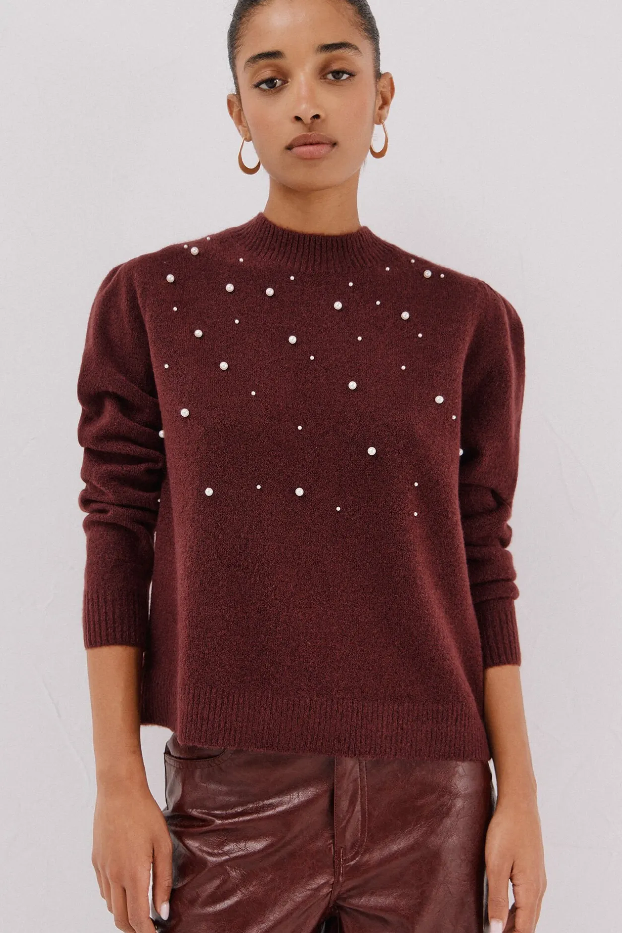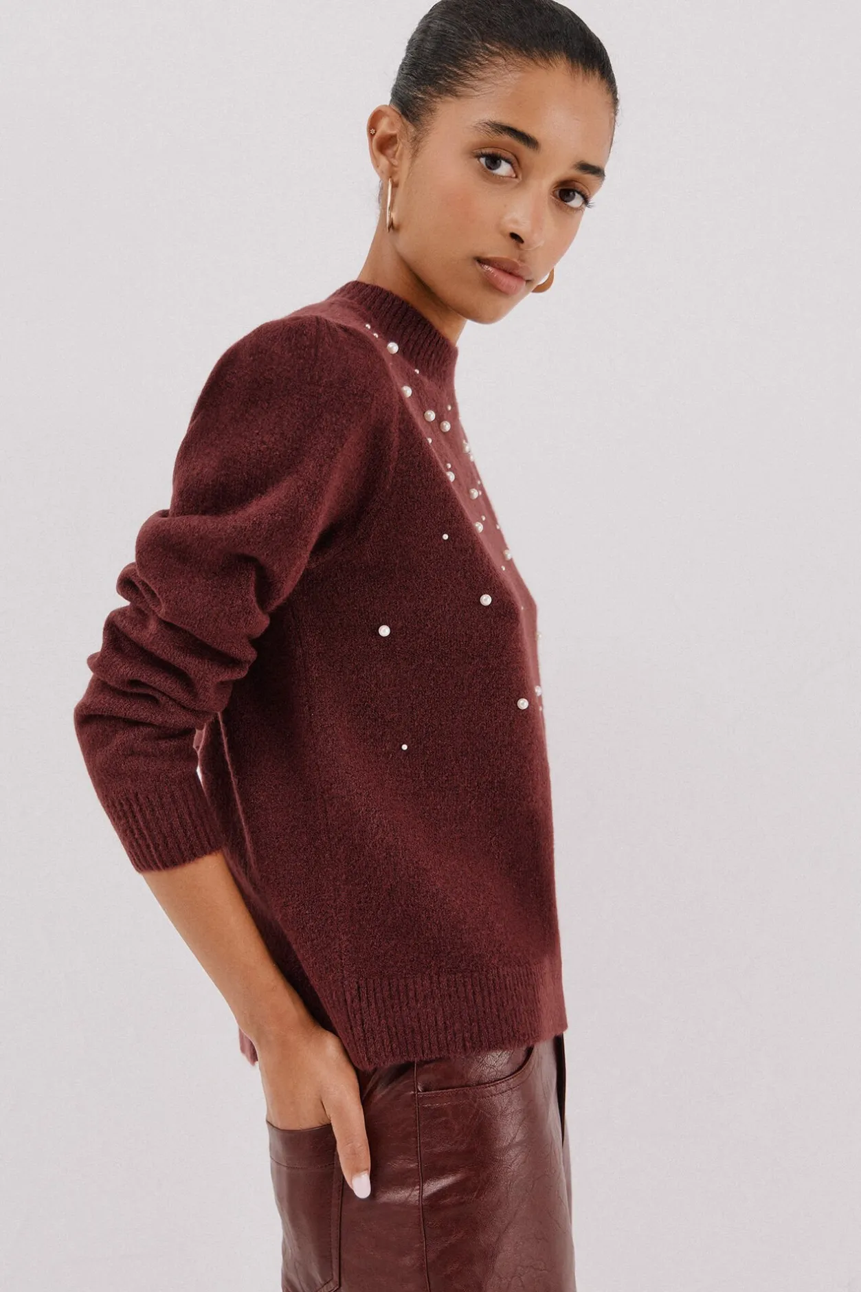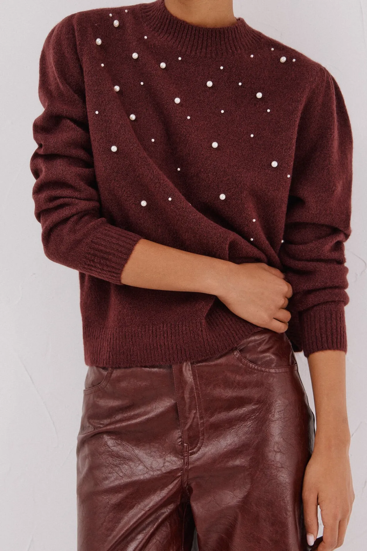 Cortefiel Jersey punto perlas Granate Best