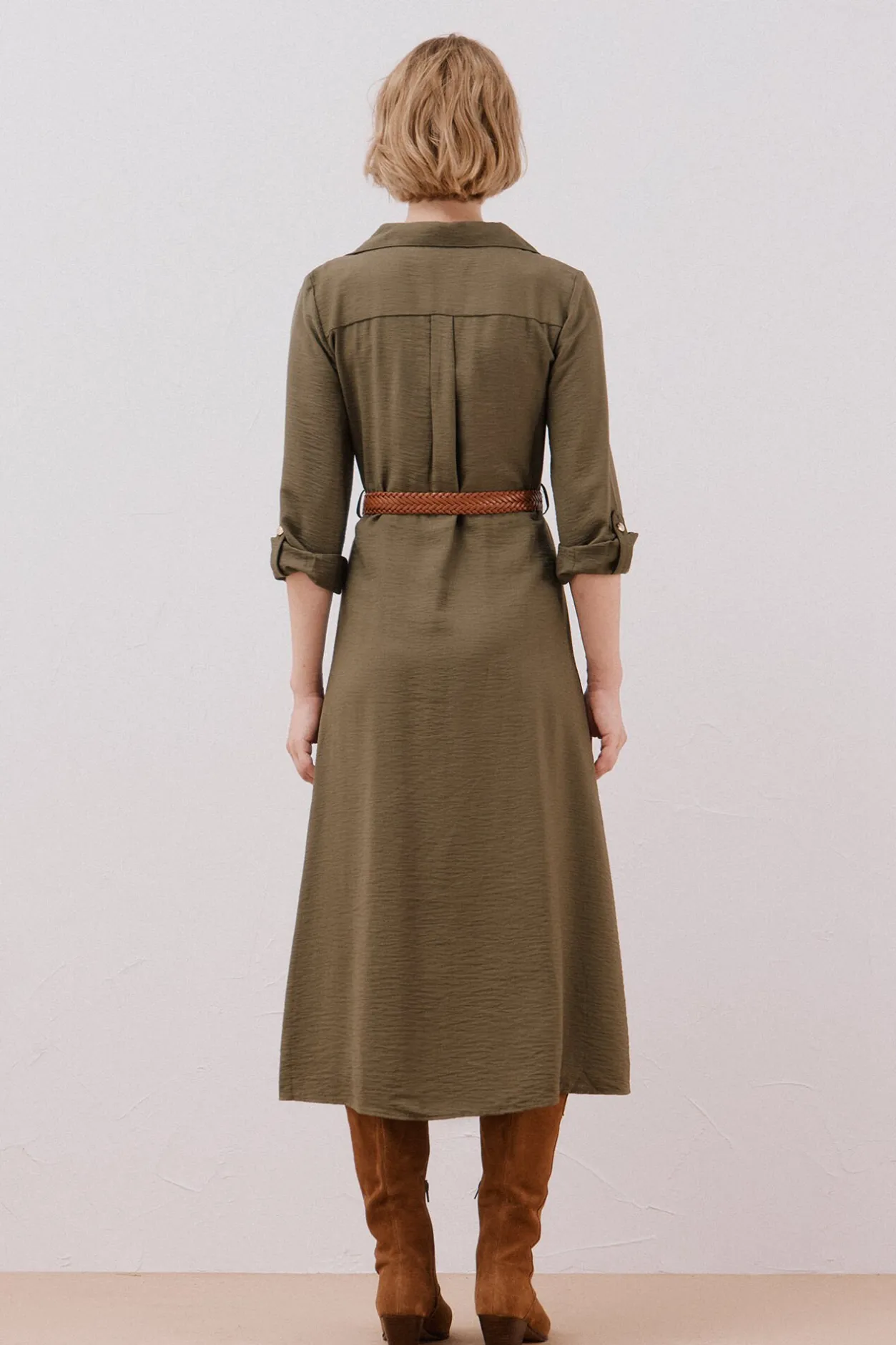 Cortefiel Vestido camisero cinturón Kaki Online