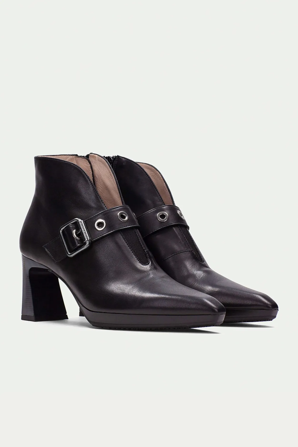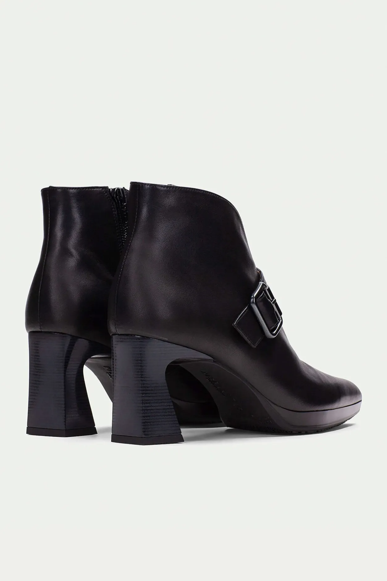 – Ligera plataforma de 1 cm y tacón geométrico cómodo de 7 cm con acabado madera