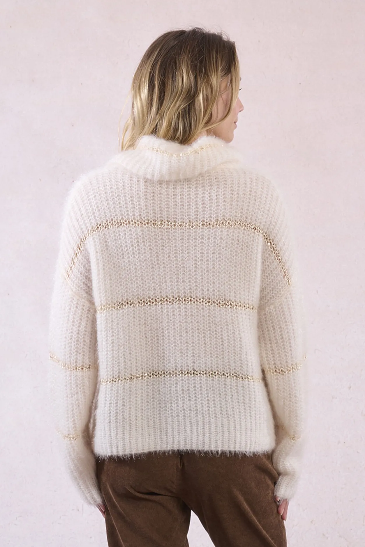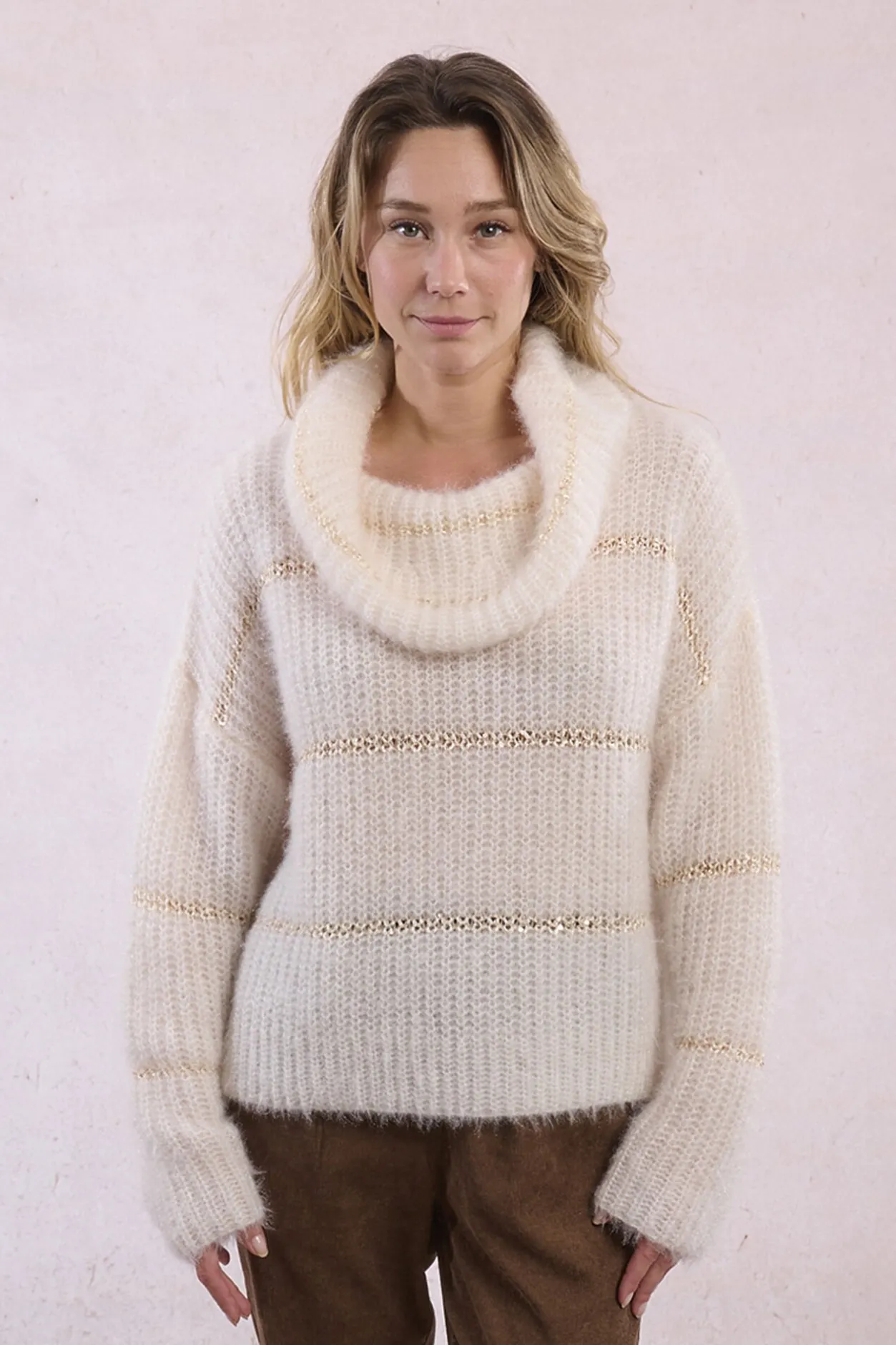 Molly Bracken Jersey de mujer de manga larga estampado rayas Marfil Hot