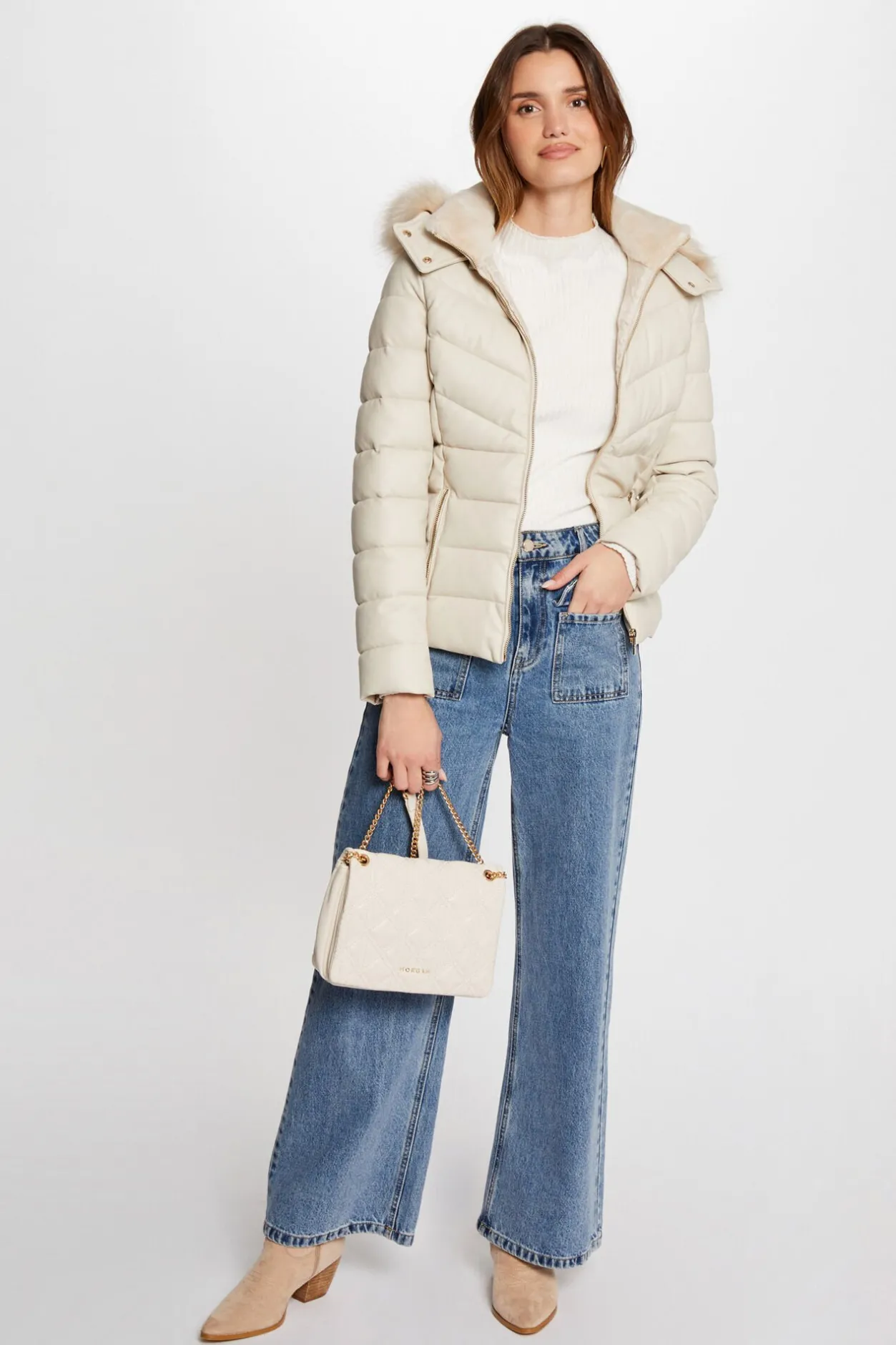 -Capucha con borde de pelo de imitación
