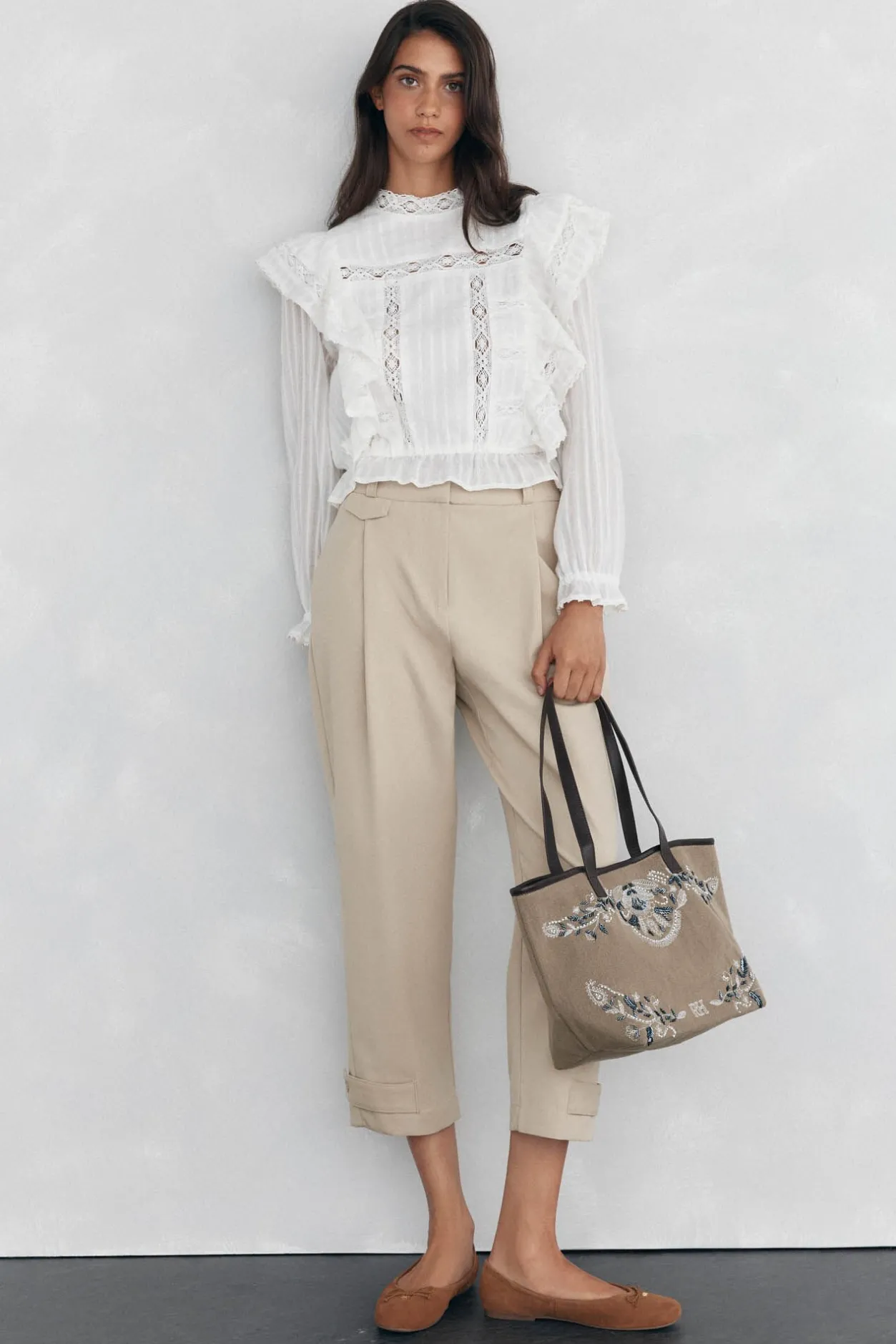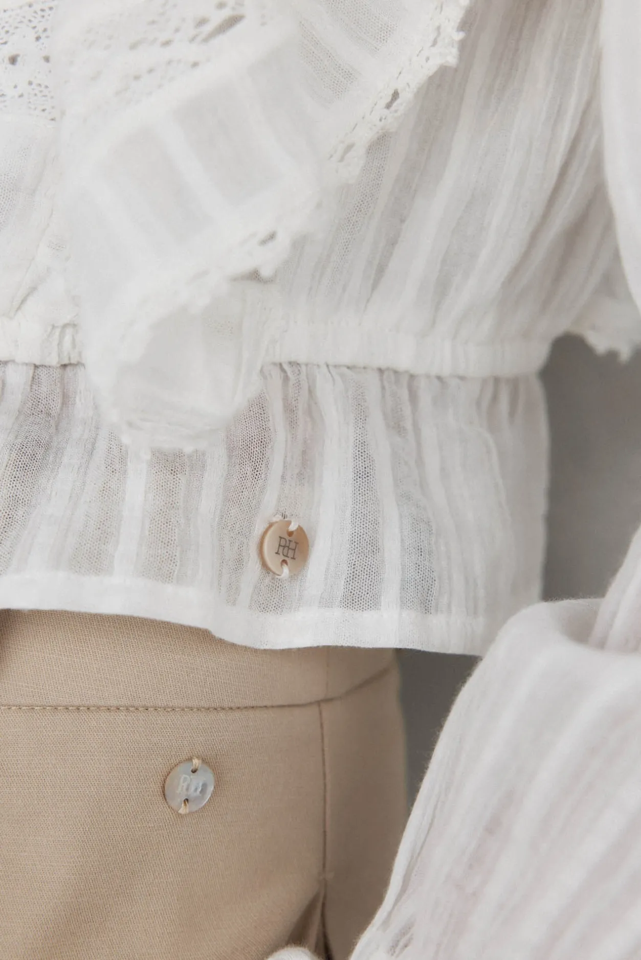 -Detalle de amplio volante y puntilla en delantero