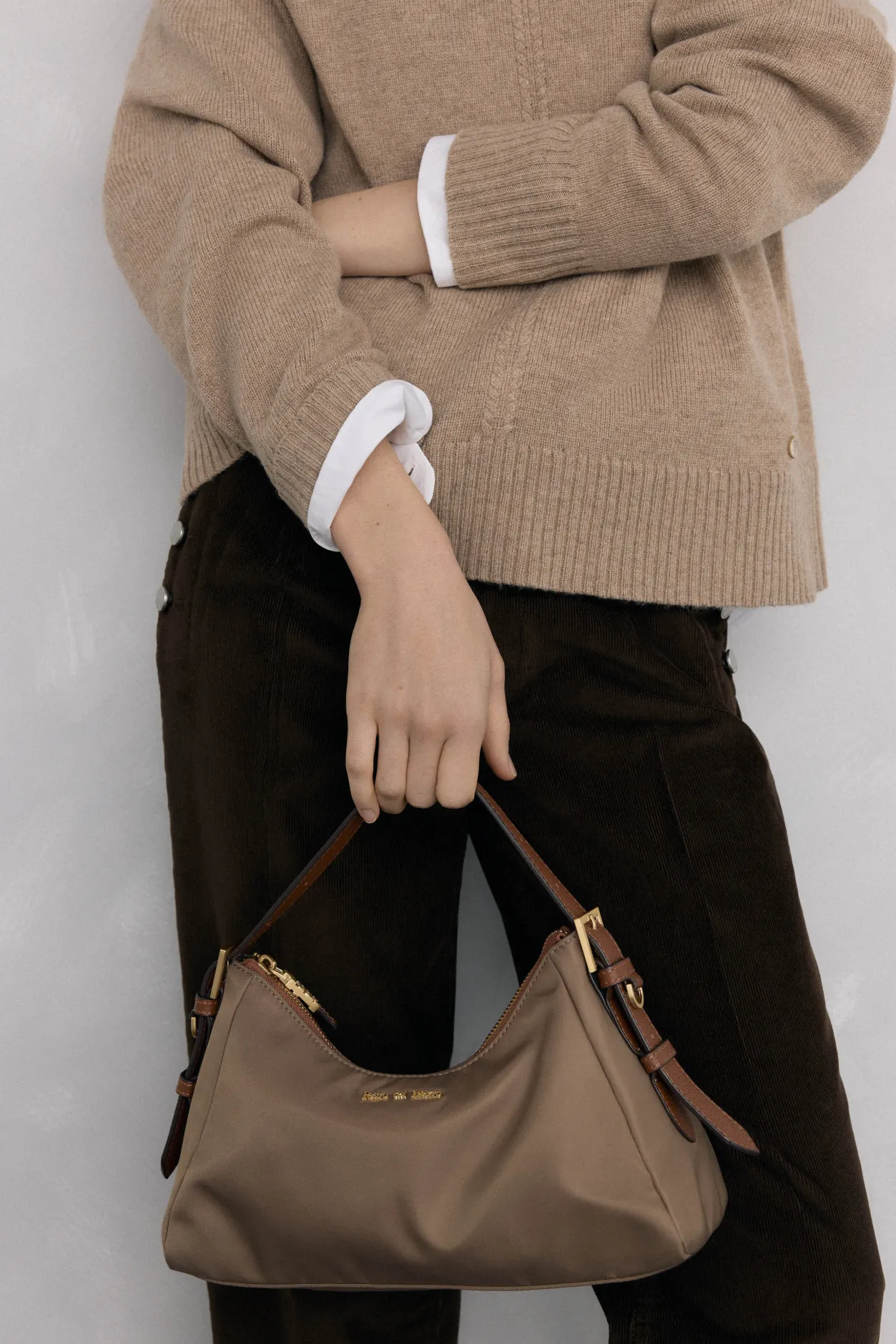 – Asa de piel para poder llevarlo de hombro y correa larga de cinta personalizada.