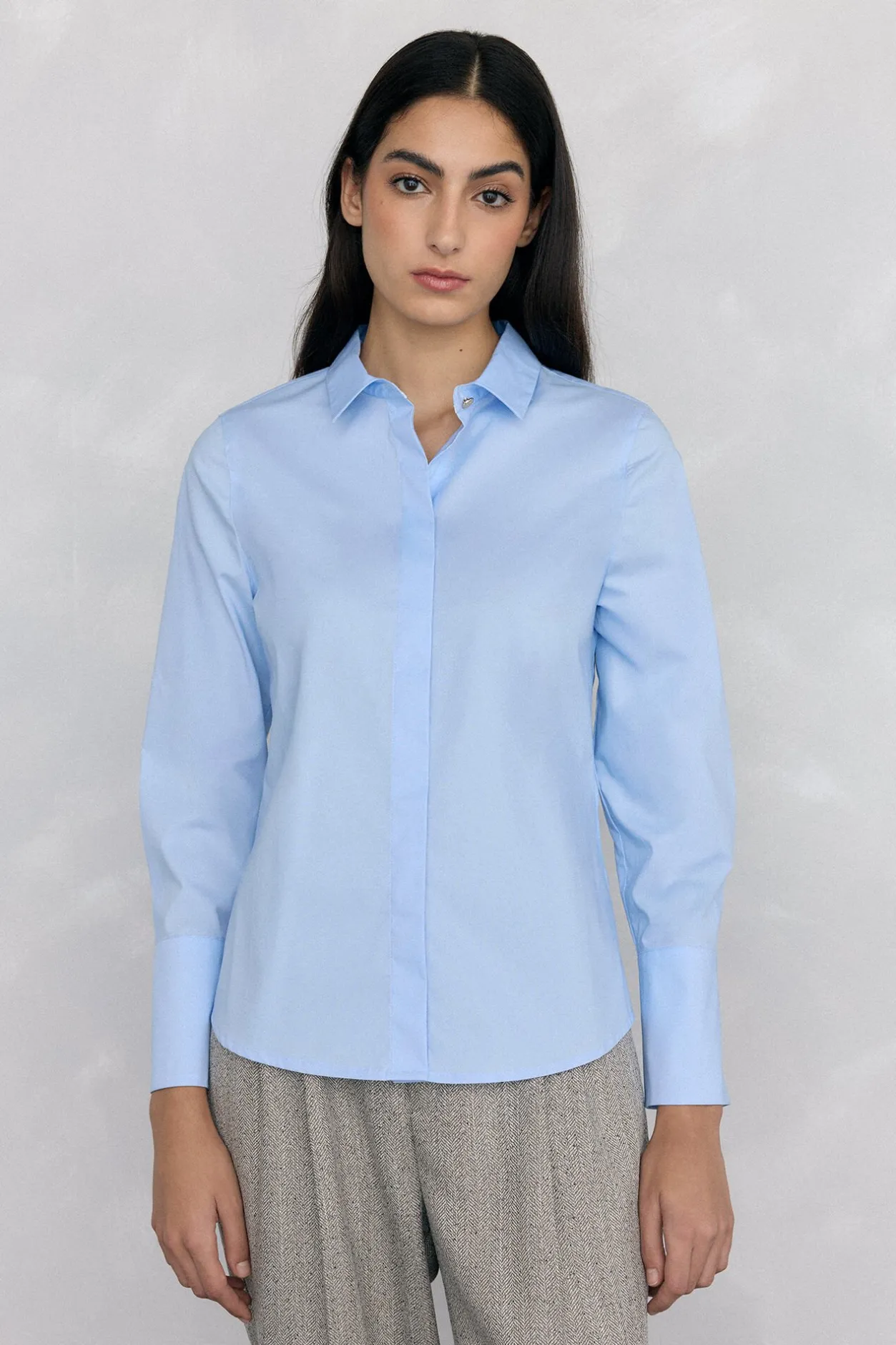 -Cuello camisero con botón dorado