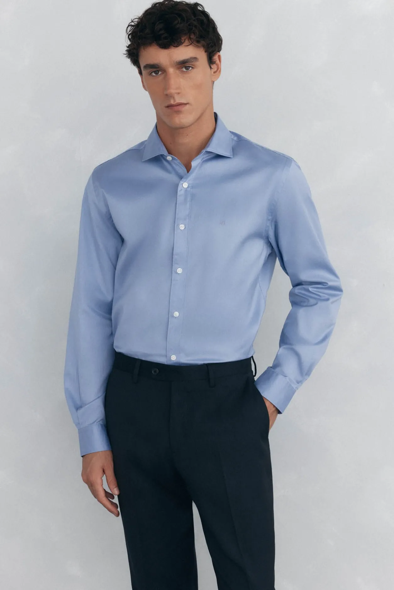 Pedro del Hierro Camisa lisa twill fácil plancha + anti olor slim fit Azul Outlet