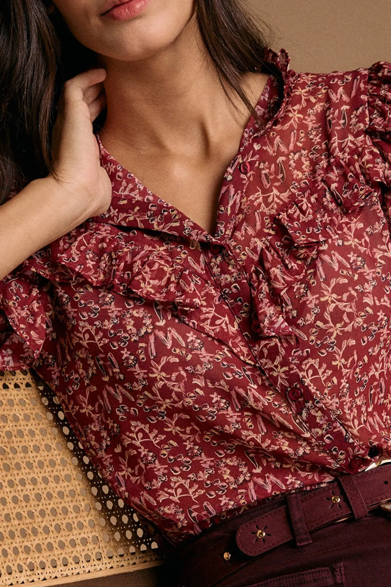 Polín Et Moi Camisa volantes estampado Lidia Vino Clearance