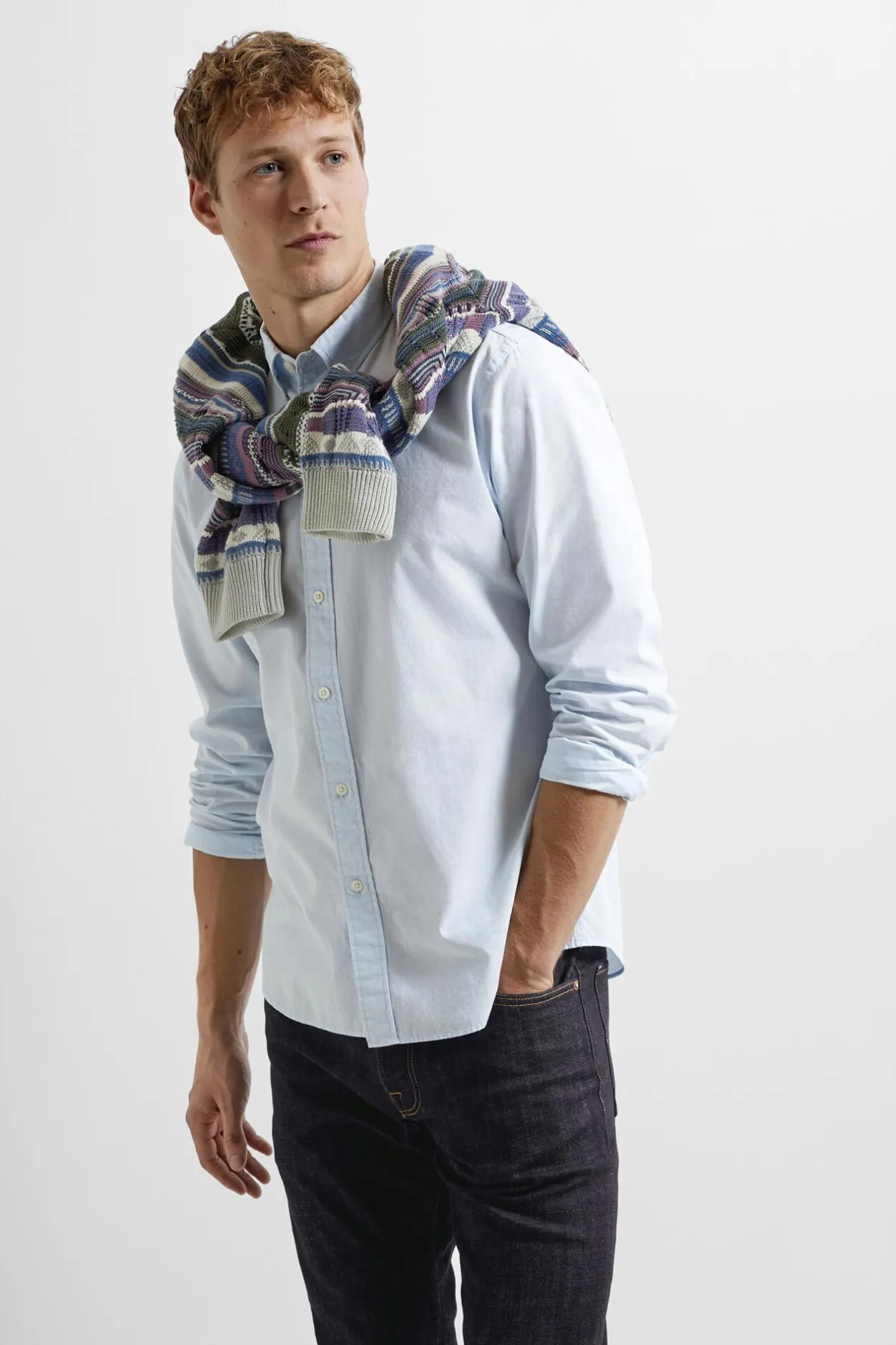 Selected Camisa de manga larga Slim Fit confeccionada con algodón reciclado Azul Sale