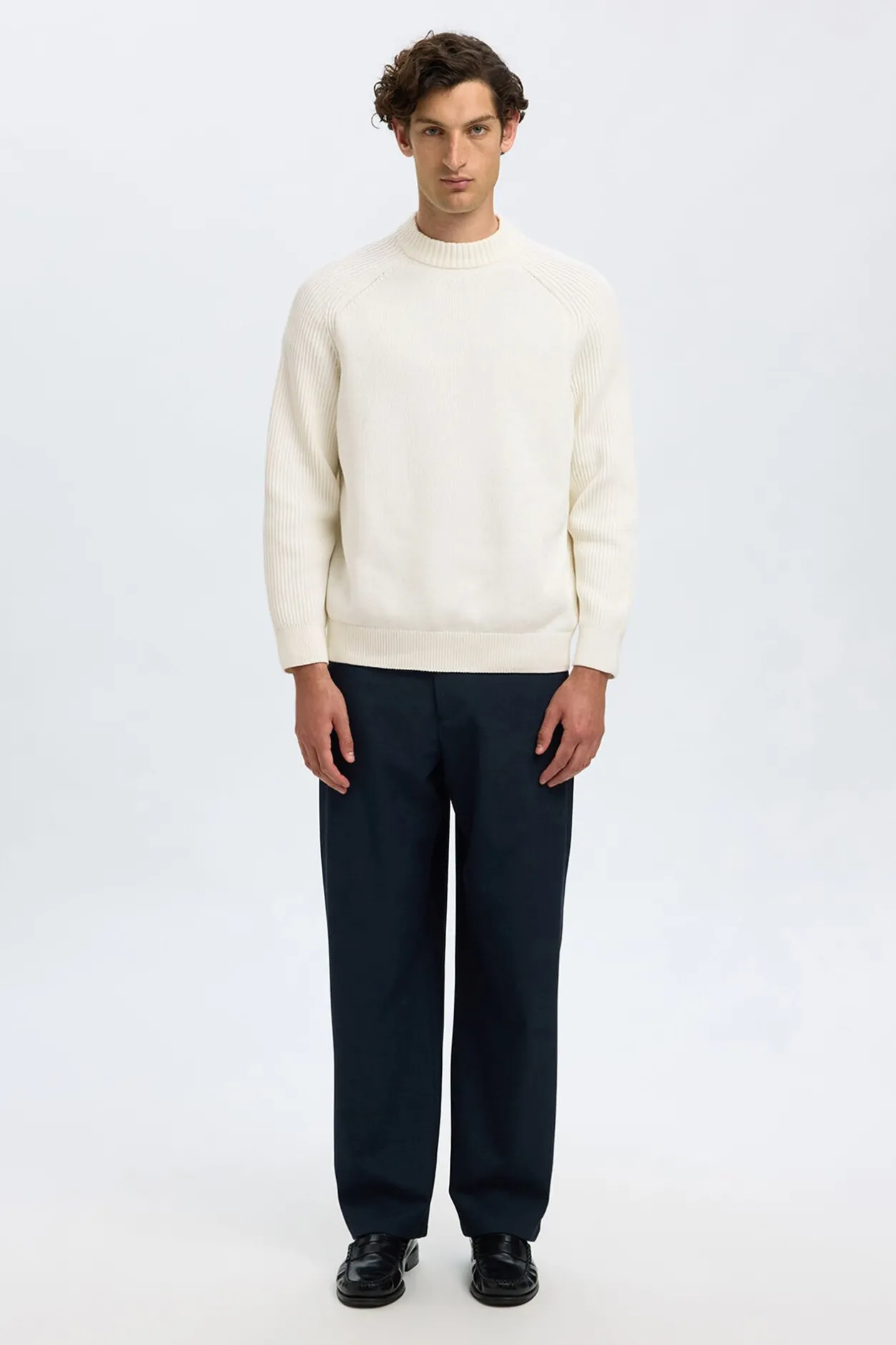 Selected Jersey cuello mock 100% algodón orgánico. Blanco Clearance