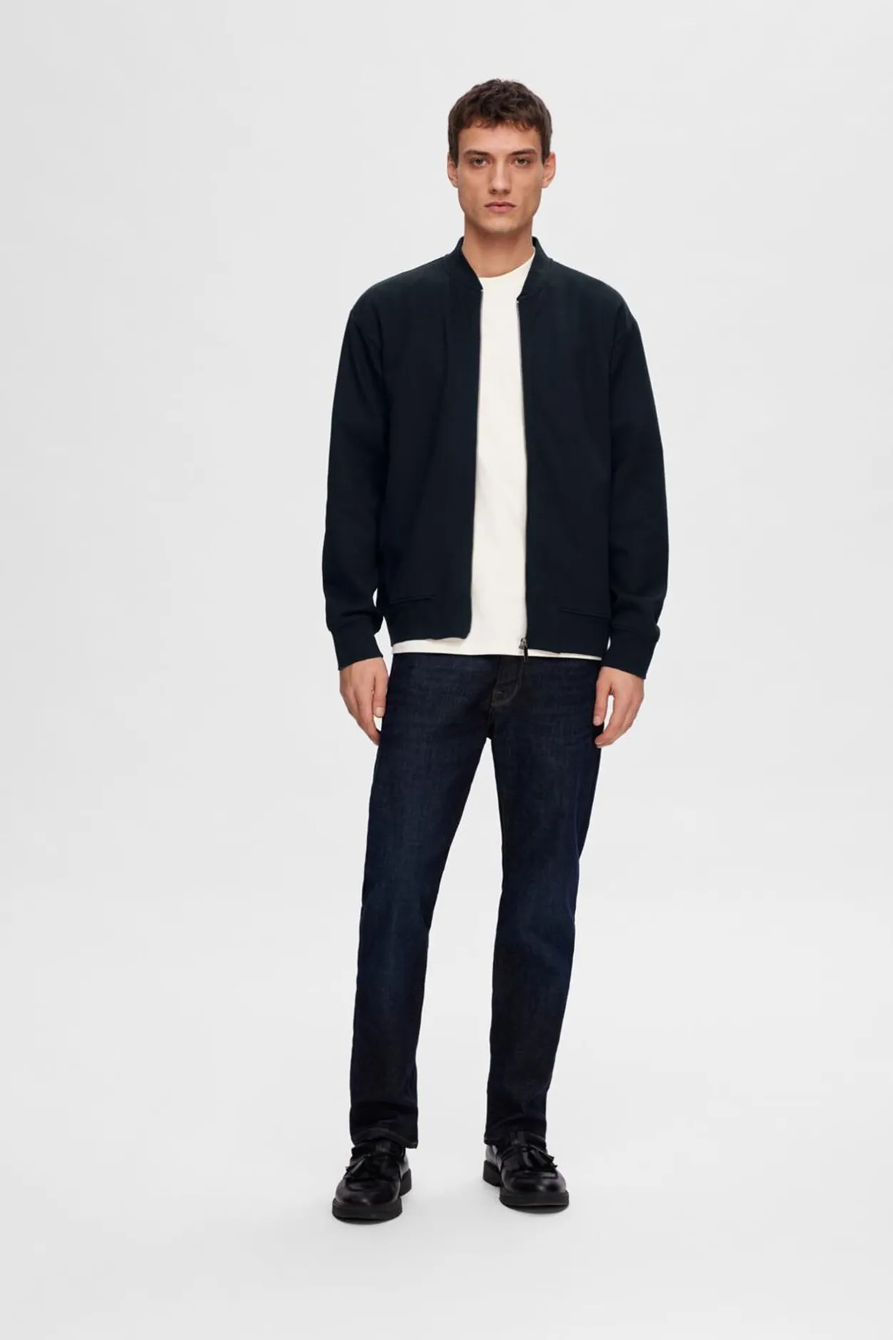 Selected Sudadera estilo Bomber confeccionada con algodón orgánico Azul marino Discount