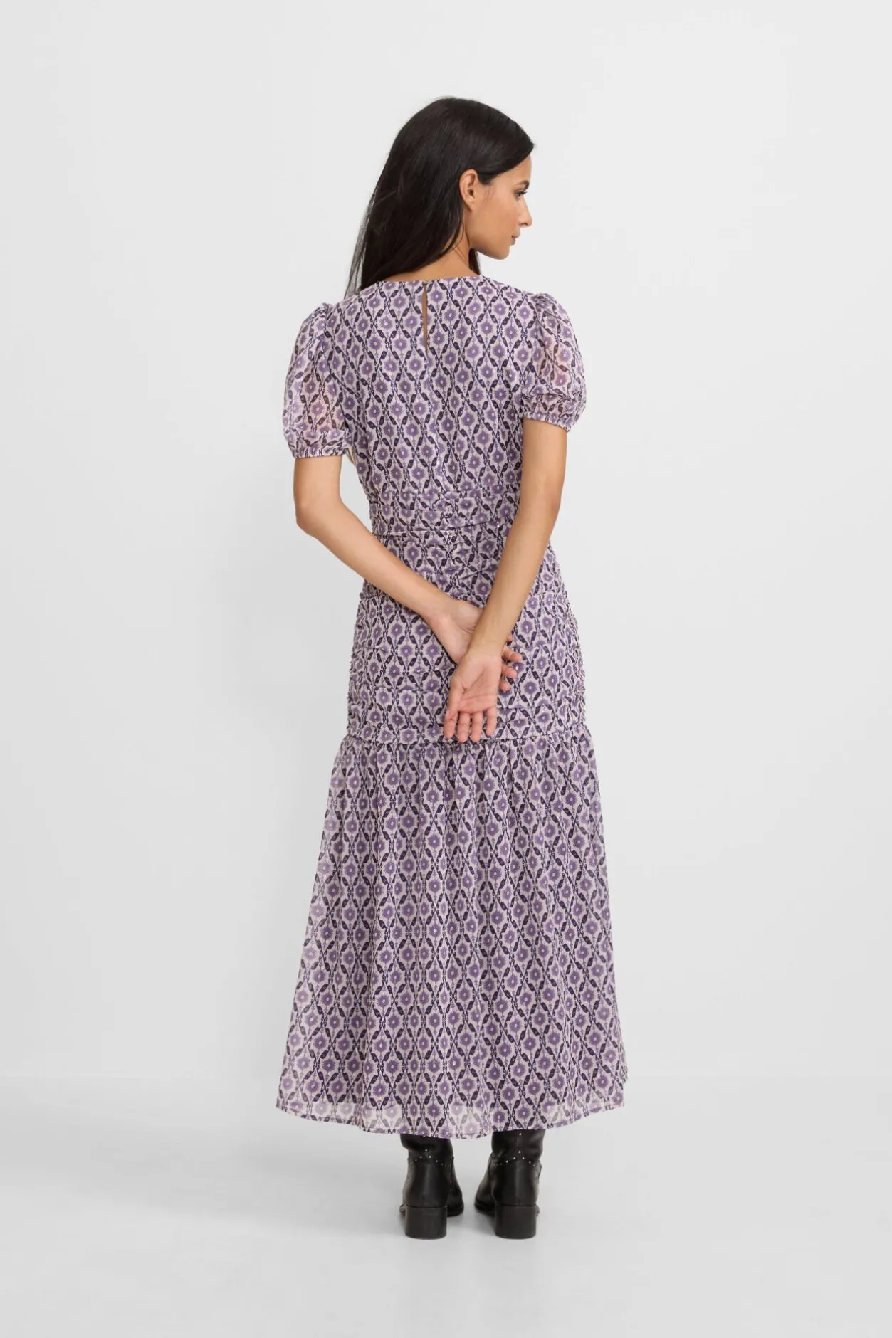 Silbon Vestido largo fruncido estampado Estampado granate Outlet
