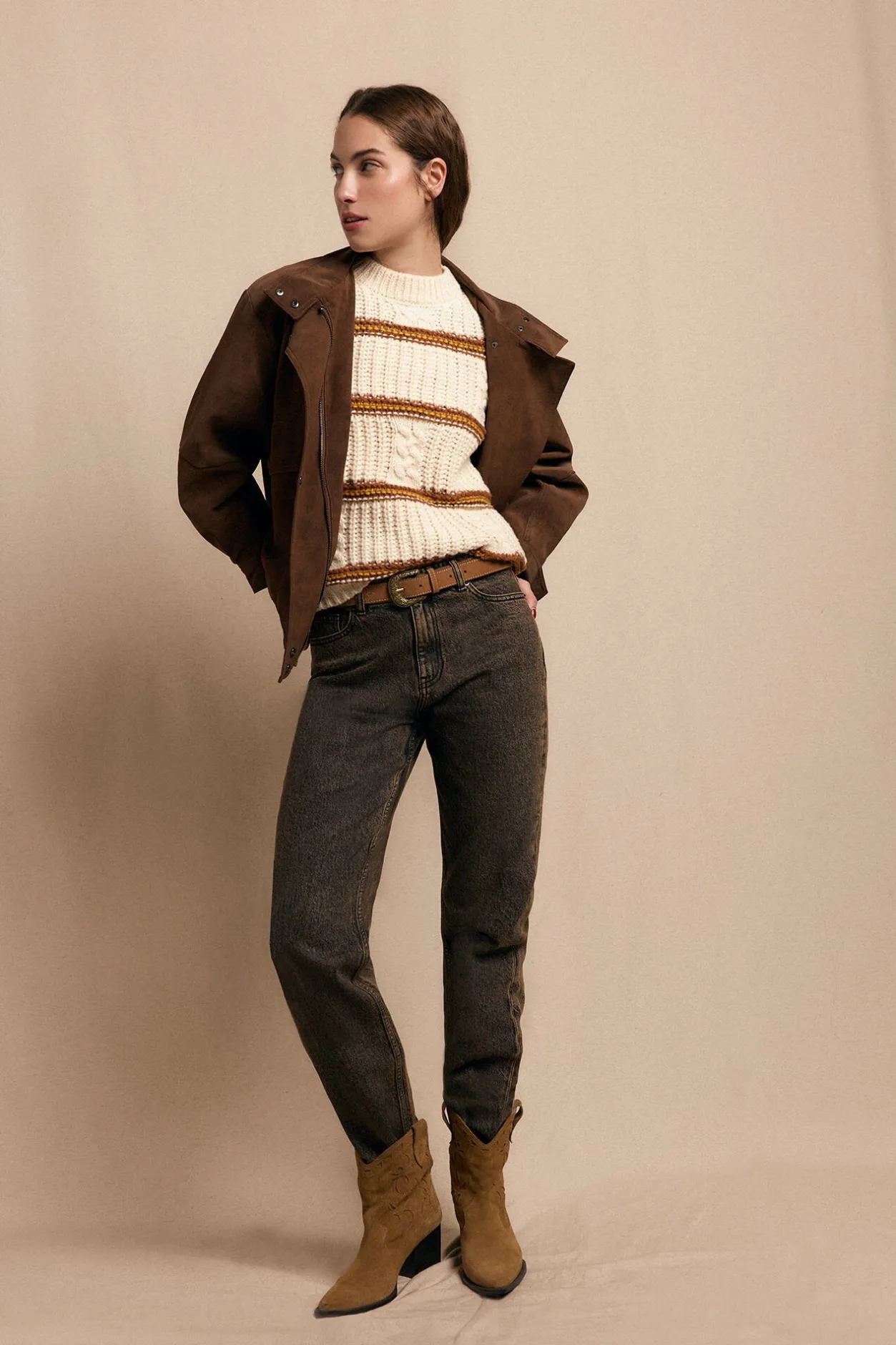 Slowlove Jersey punto perlado rayas Marfil Sale