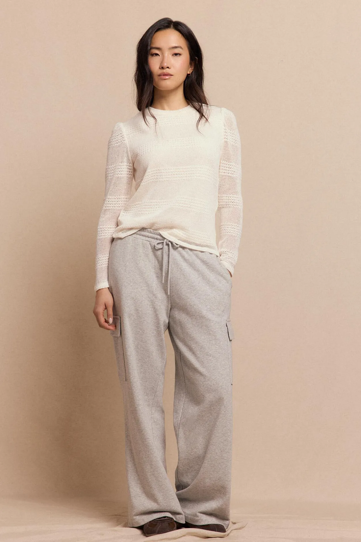 Slowlove Top manga larga estructura rústica Marfil Sale
