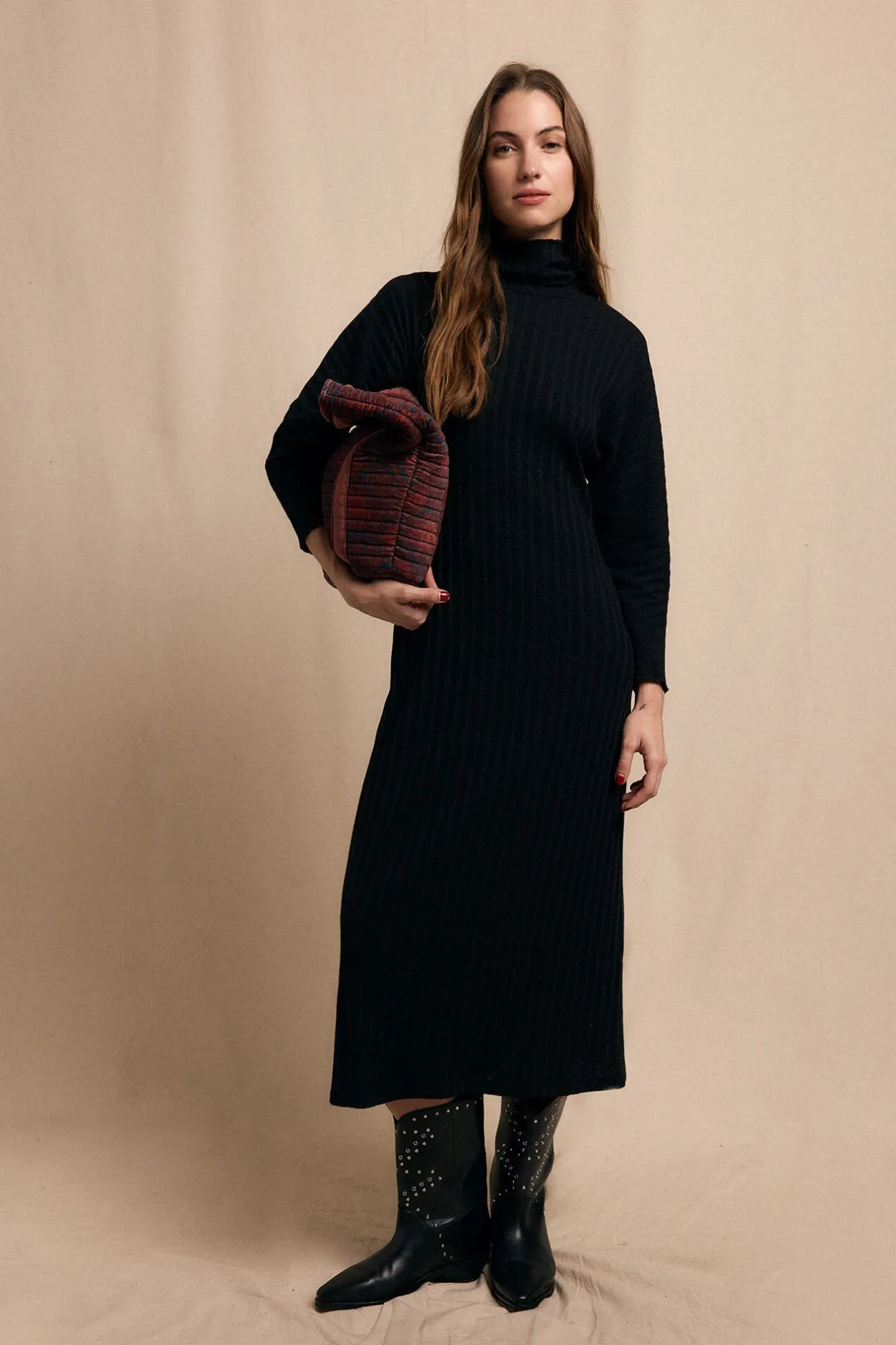 Slowlove Vestido cuello alto canalé Negro Discount