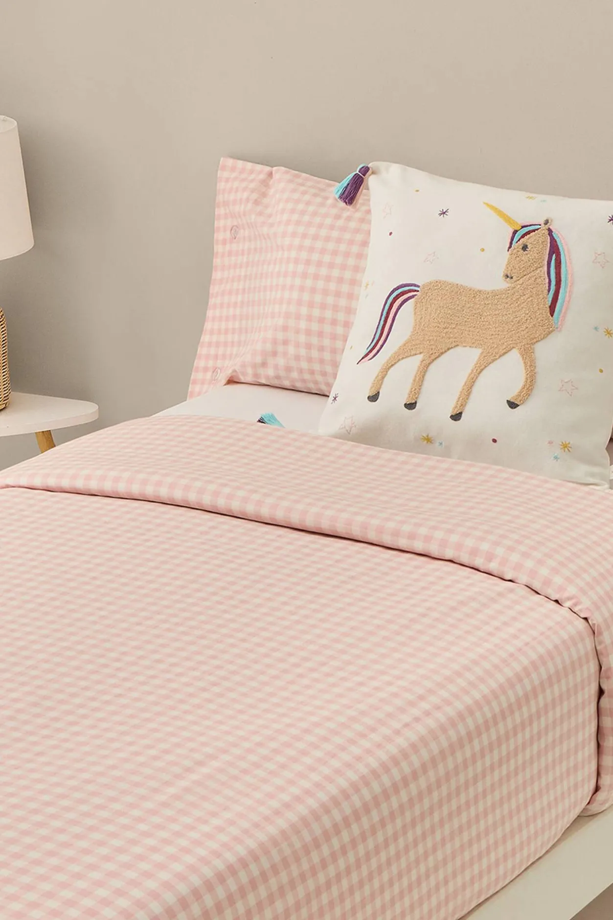 Textura Funda nordica tejida cuadros vichy rosa Sale