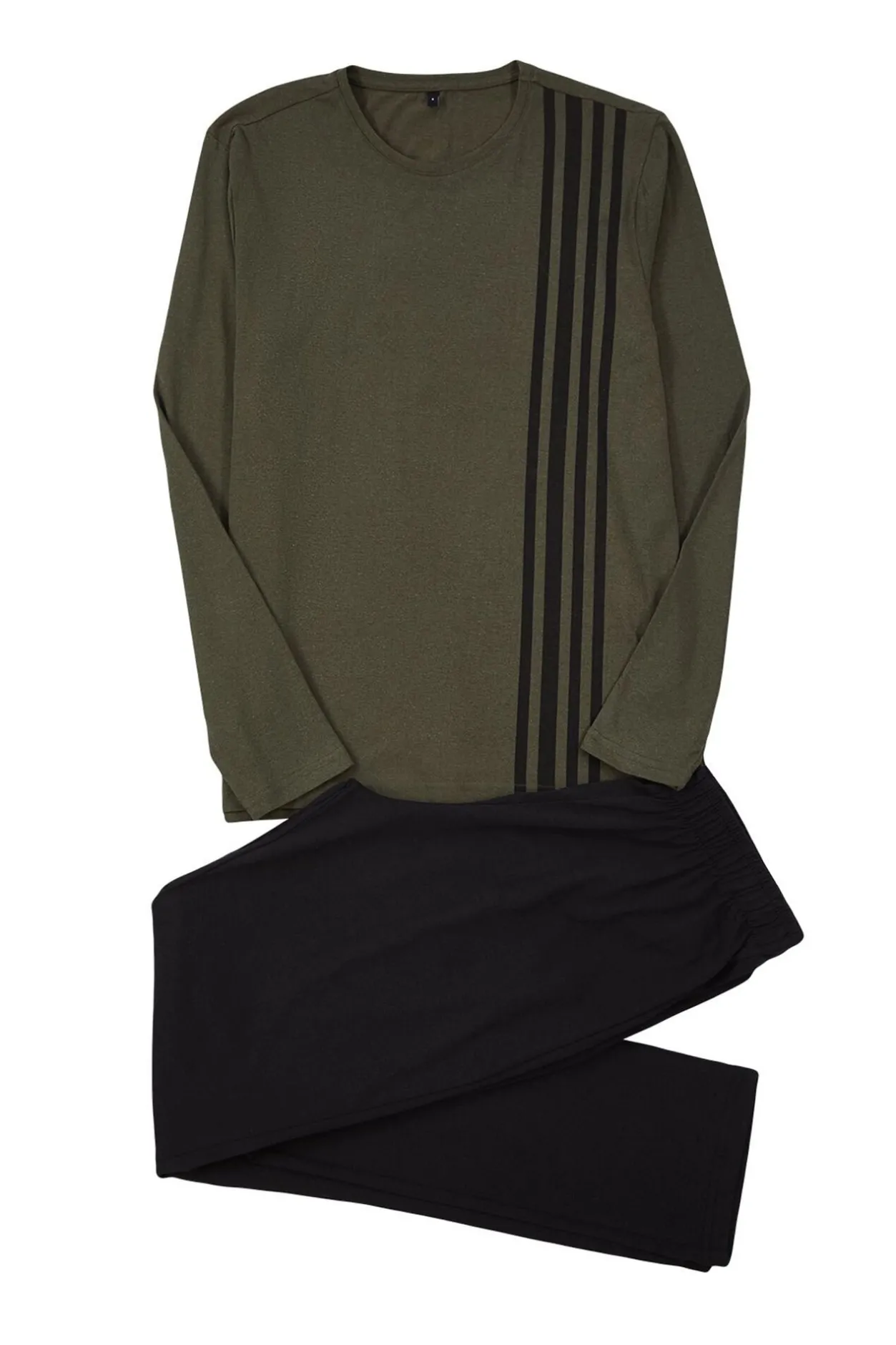 Trendyol Conjunto de pijama caqui de corte regular con estampado de rayas kaki Sale
