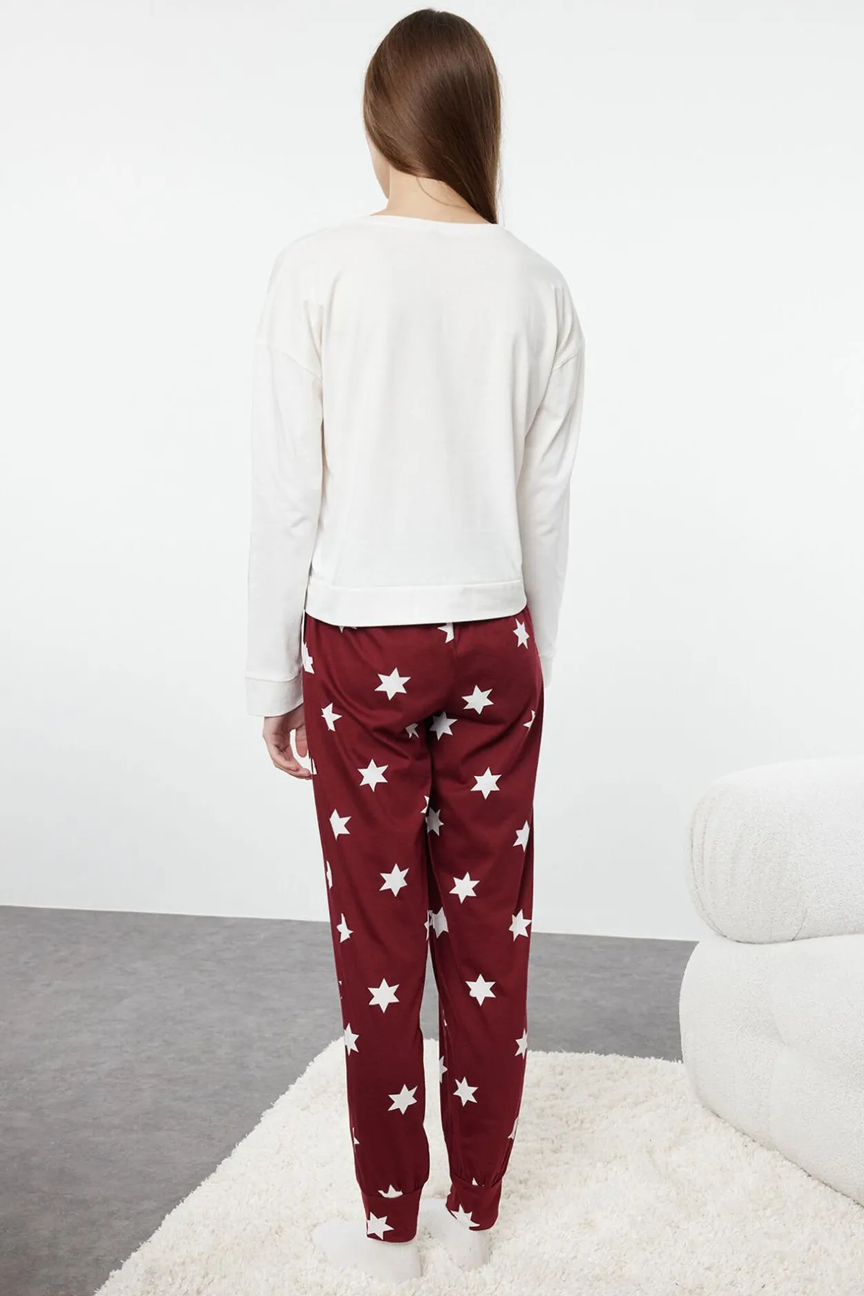 Trendyol Conjunto de pijama estrellas blanco y rojo burdeos Discount