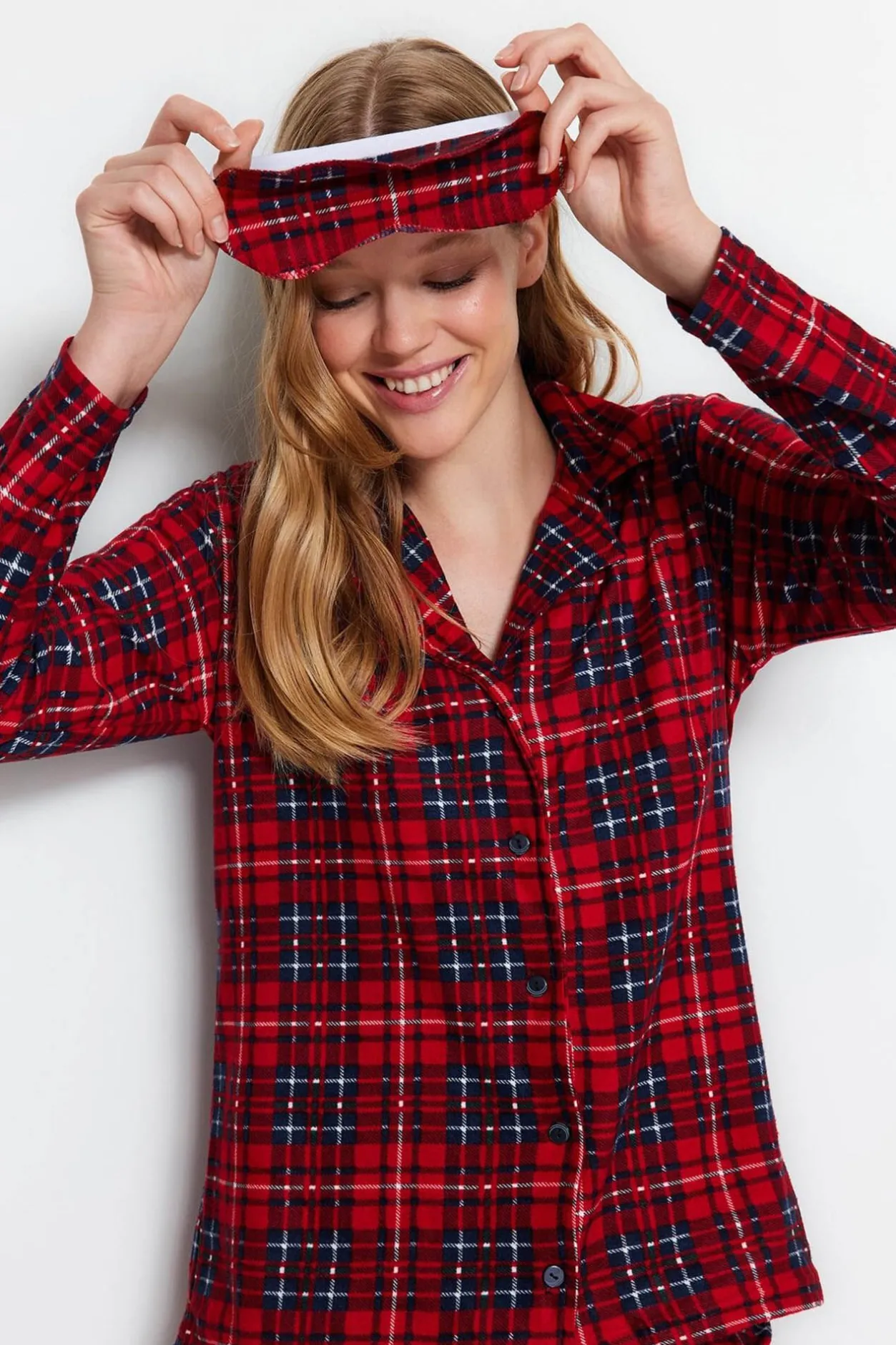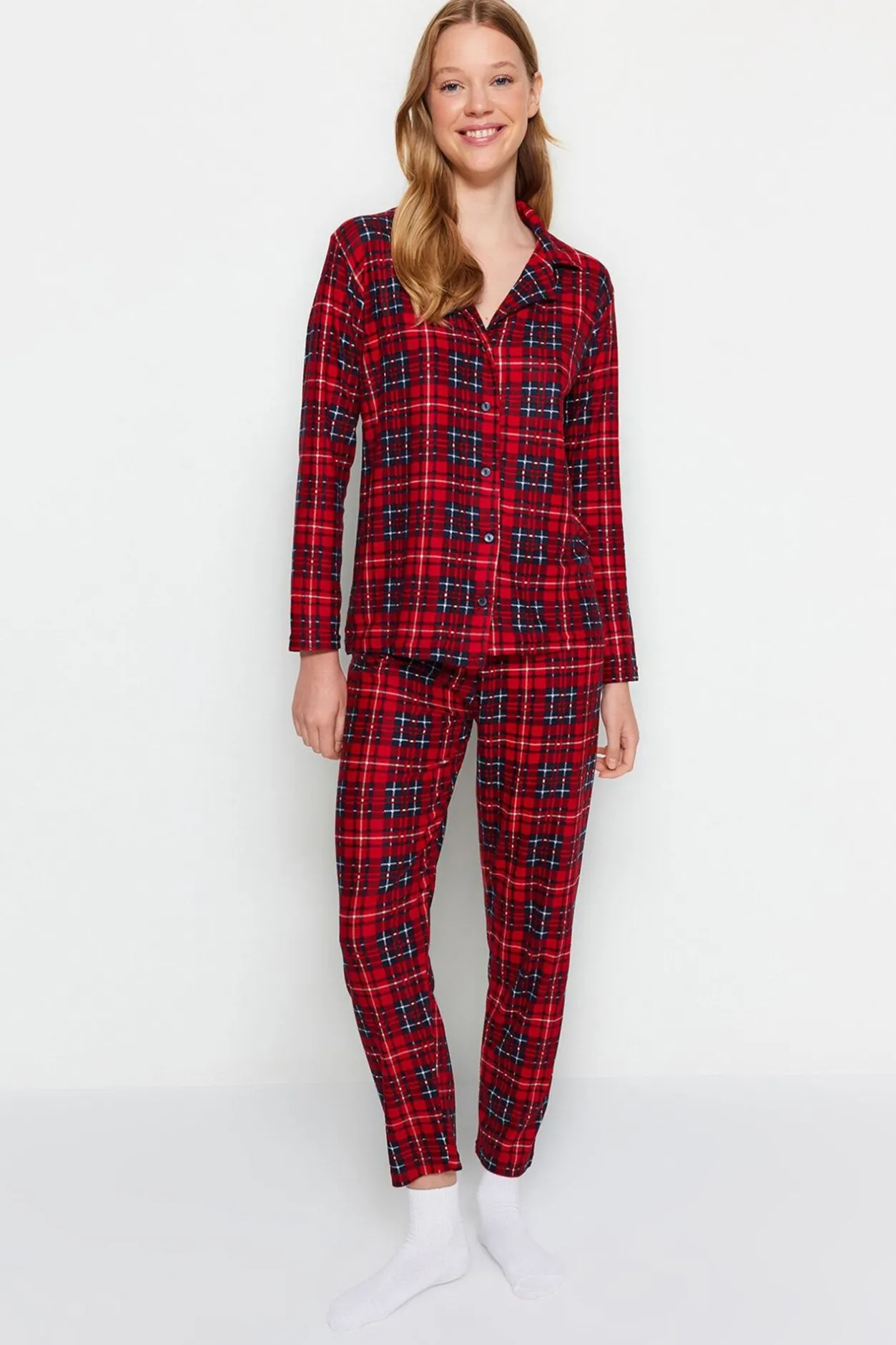 Trendyol Conjunto pijama camisero cuadros rojo Online