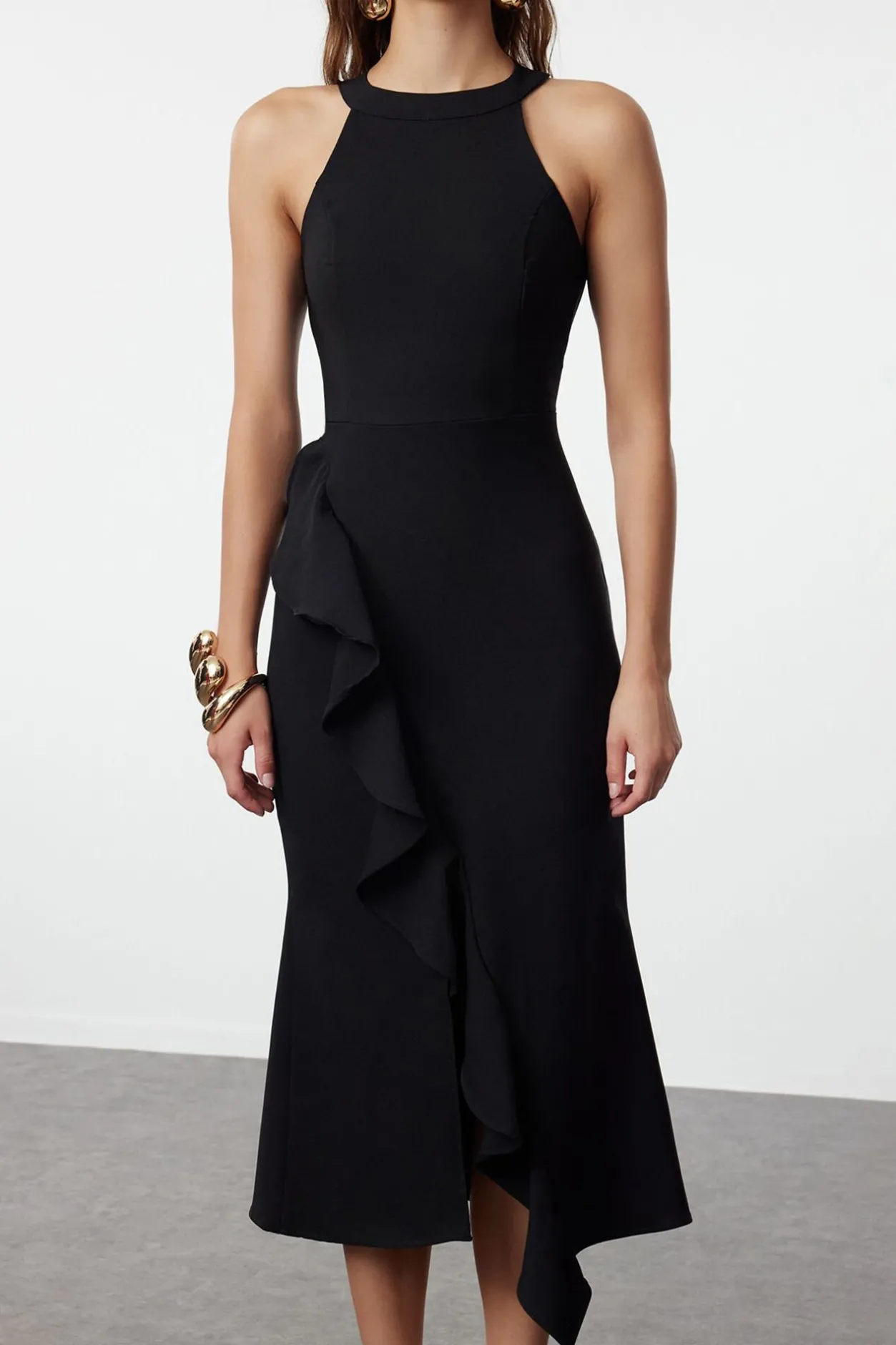 Trendyol Vestido con volantes negro Clearance