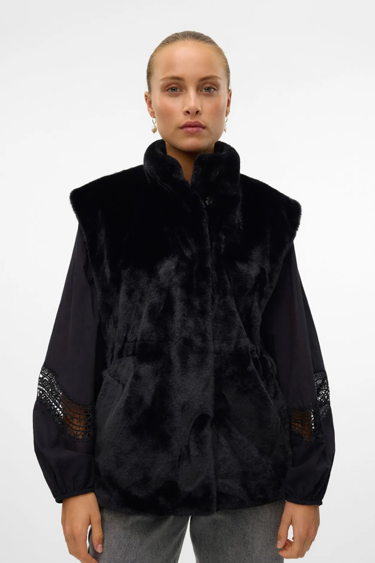 Vero Moda Chaleco de pelo cuello alto Negro Best