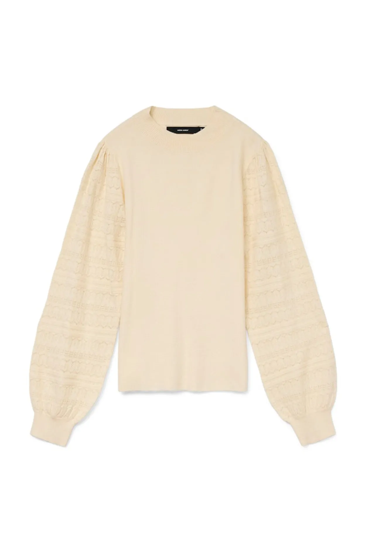 – Cuello redondo y detalle ribeteado en cuello y puños.