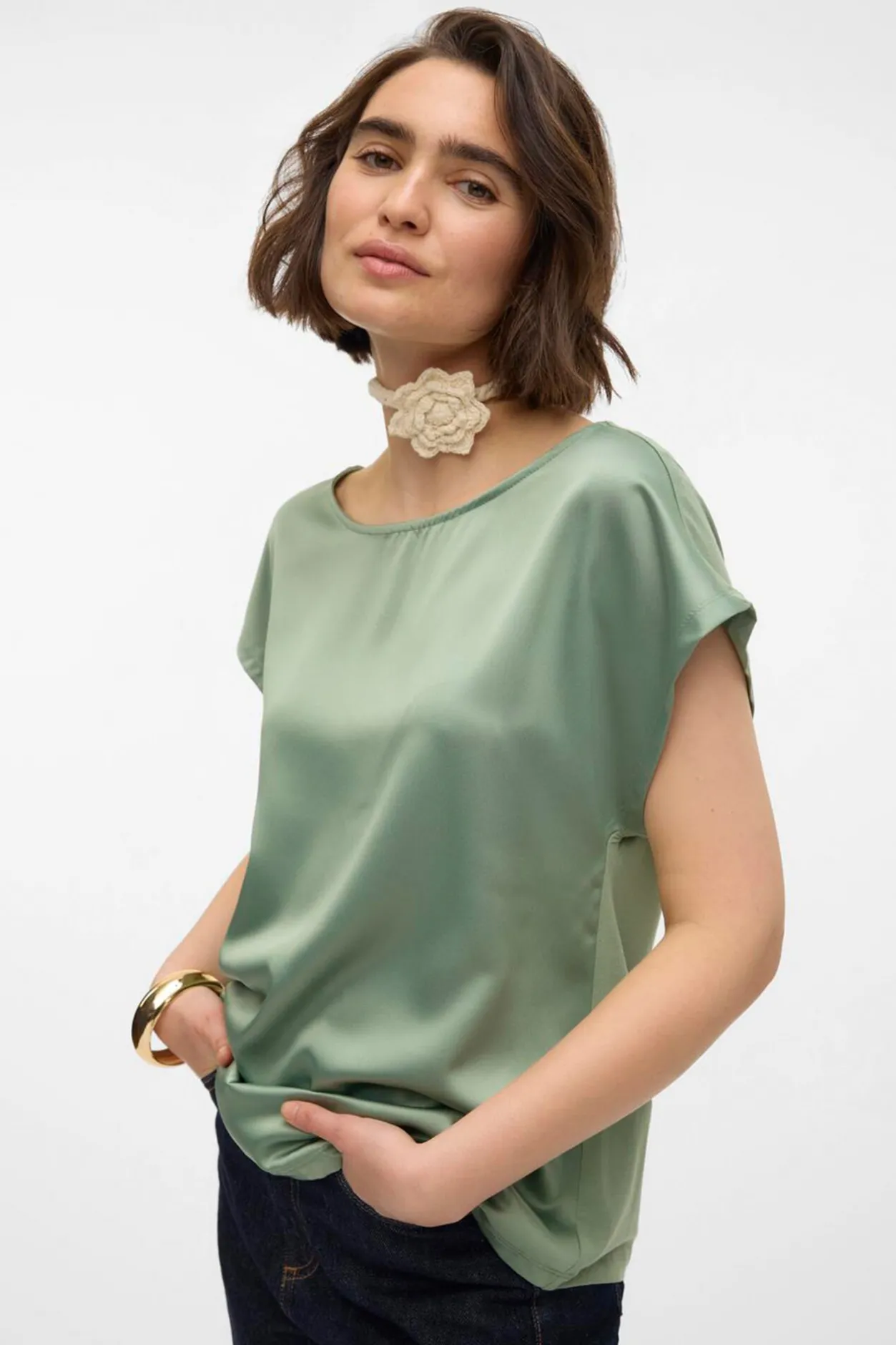 Vero Moda Top de manga corta Verde oscuro
