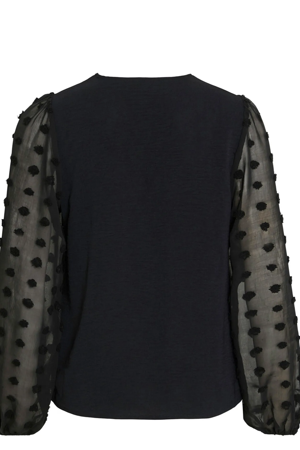 – Mangas semitransparentes, ligeramente abullonadas con elástico en puños