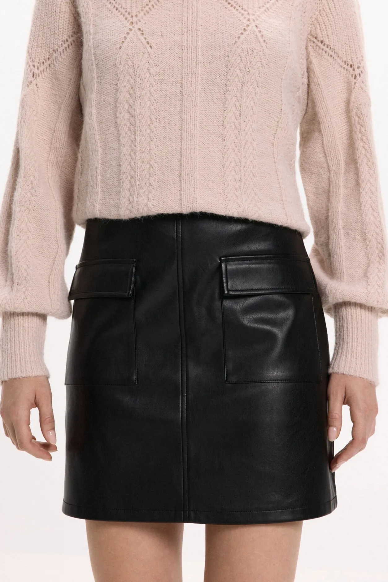 Vila Falda corta polipiel Negro Discount