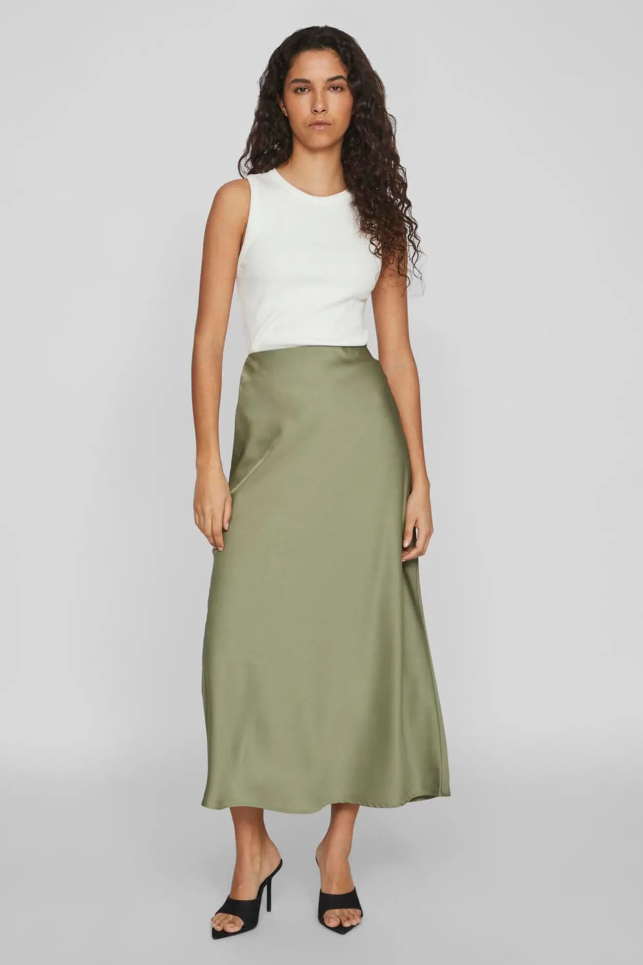 – Cintura alta elástica.¡Capta todas las miradas con esta hermosa maxifalda de satén! Es una de nuestras prendas favoritas gracias a su cintura alta y elástica que le confieren mucho estilo y comodidad.Largo: 90 cm en la talla M