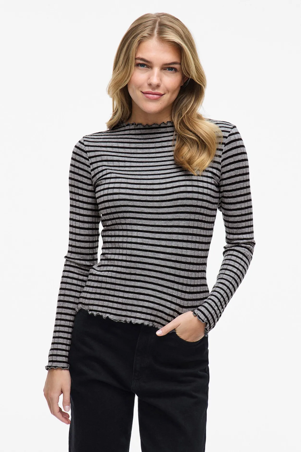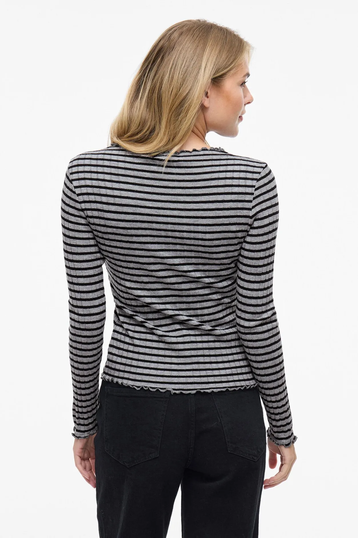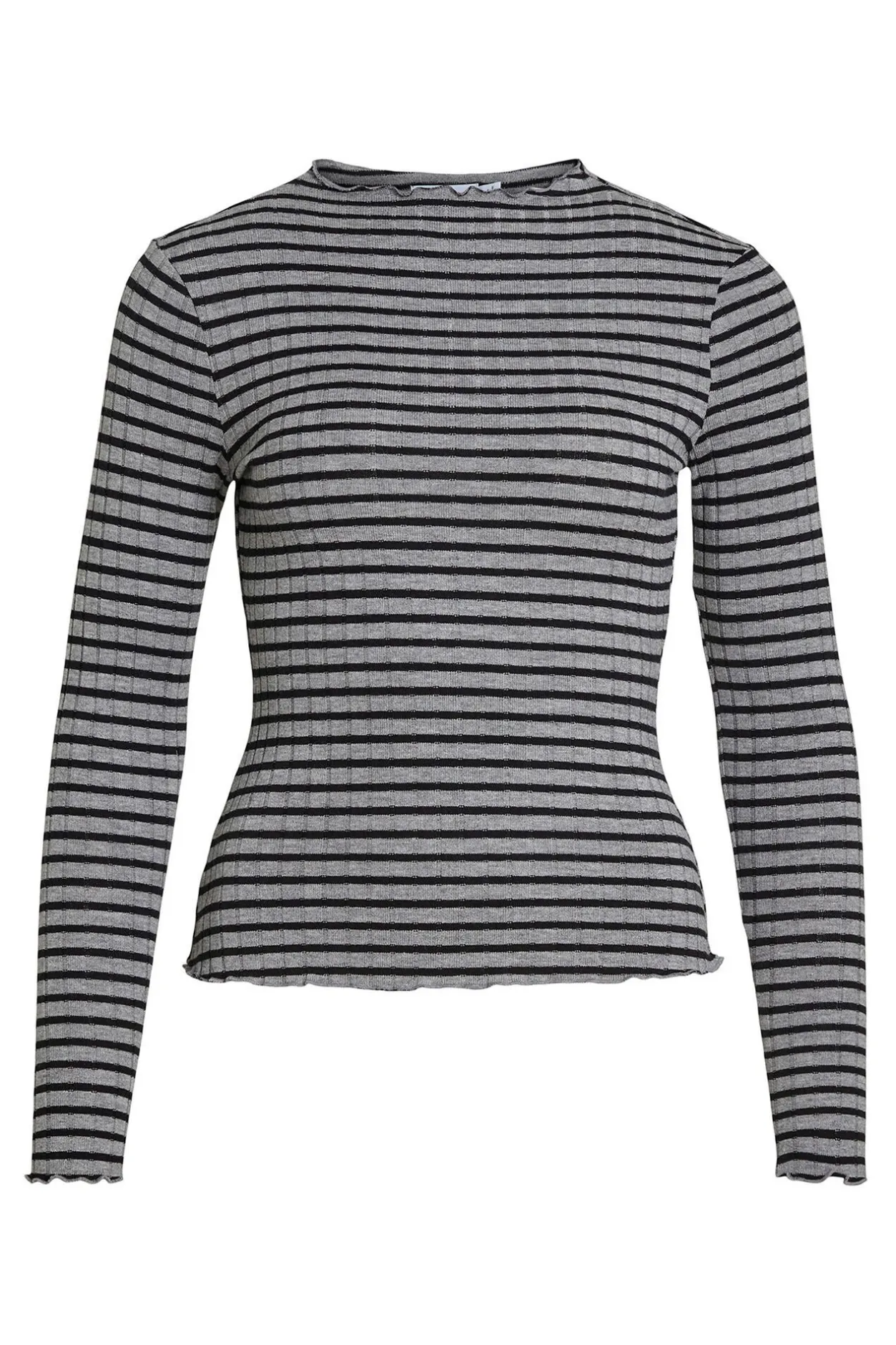 Vila Top de manga larga con ribetes Estampado gris