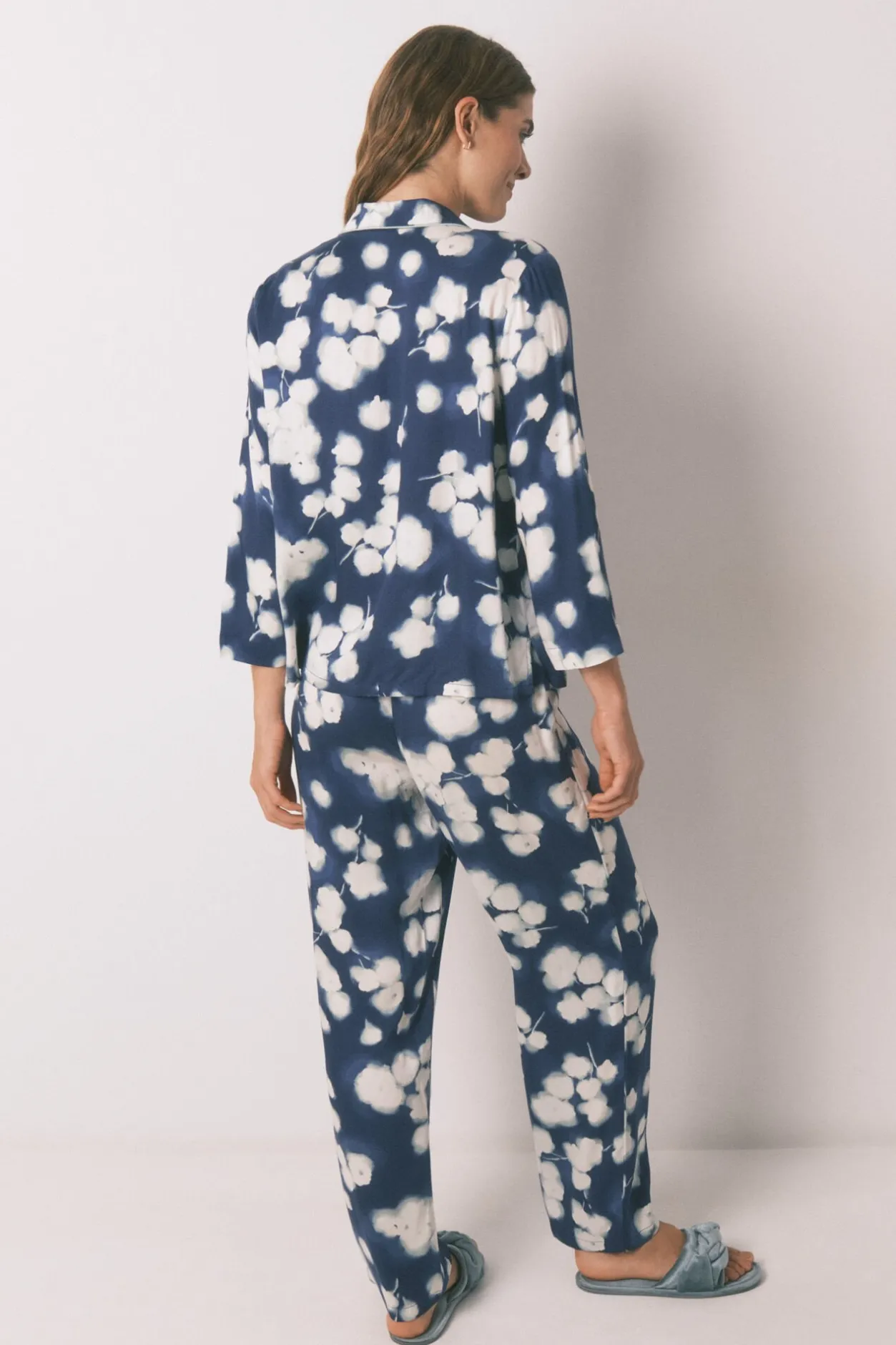 Women’secret Pijama camisero largo viscosa floral azul estampado New
