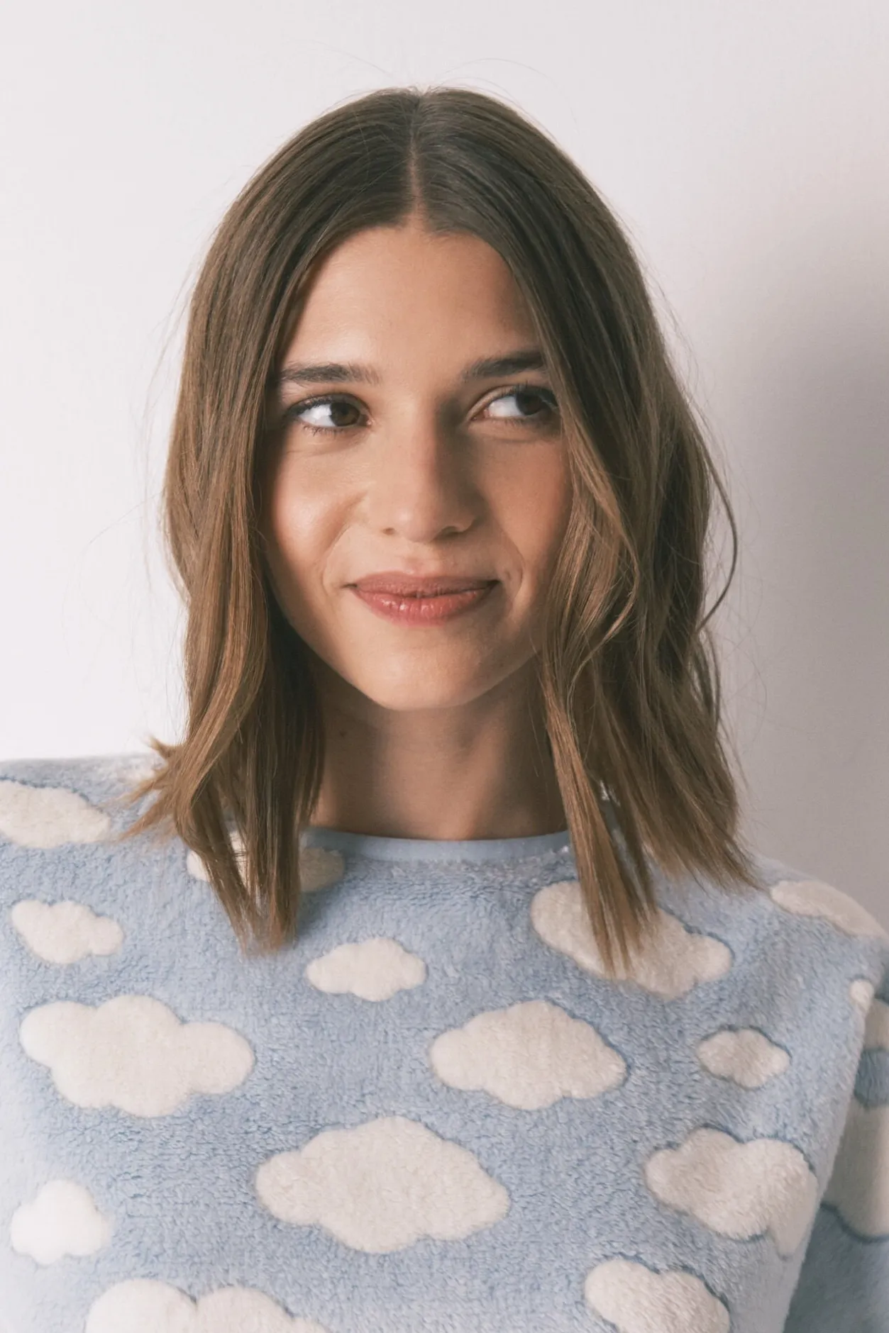 – Parte de arriba con estampado ideal de nubes, escote redondo, mangas caidas y puños en las mangas y bajo.