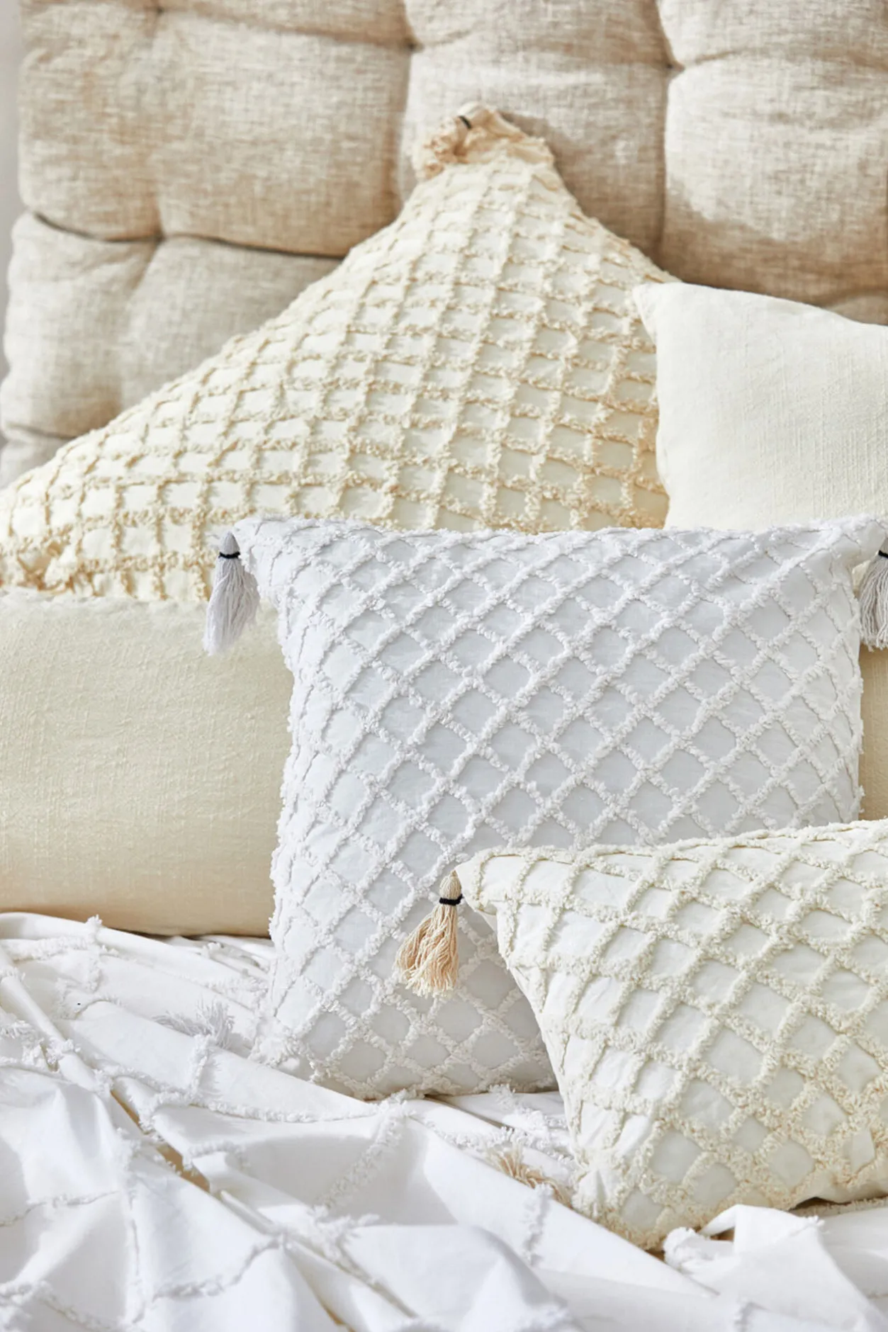 Calma House Funda de cojín con relieve de rombos crudo Royal amarillo