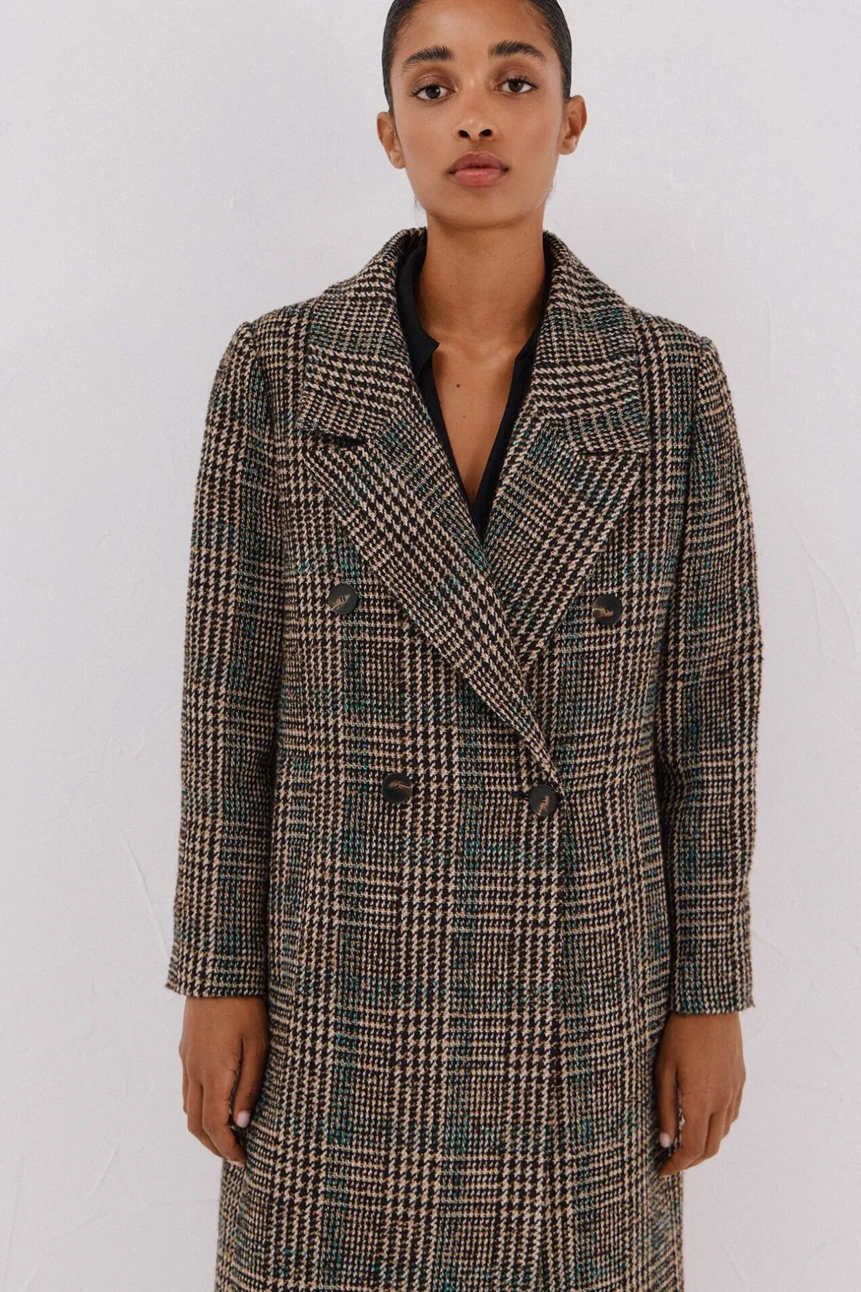 Cortefiel Abrigo largo tejido cuadros Multicolor Hot