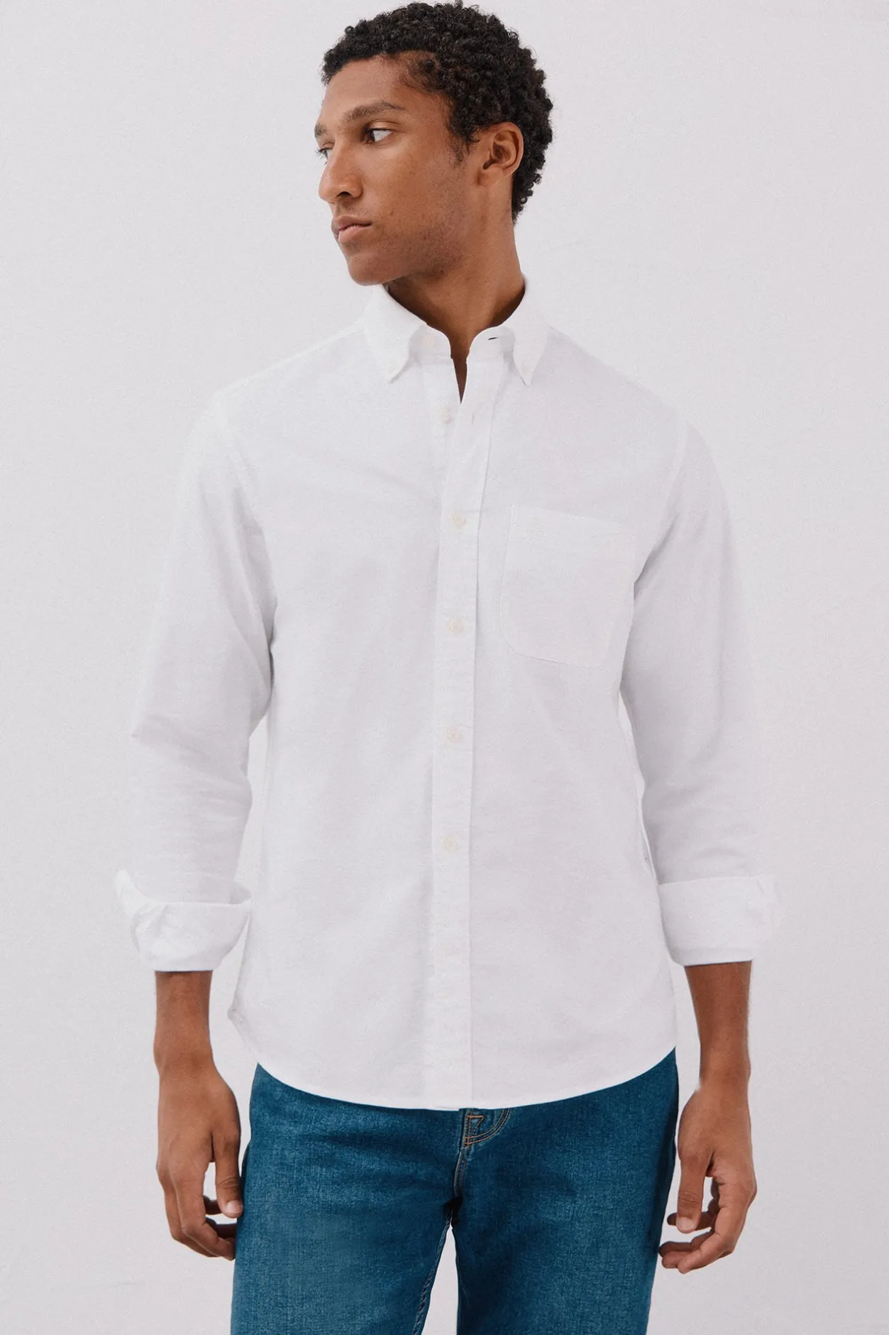 -Cuello con botones, bolsillo en pecho con logo bordado