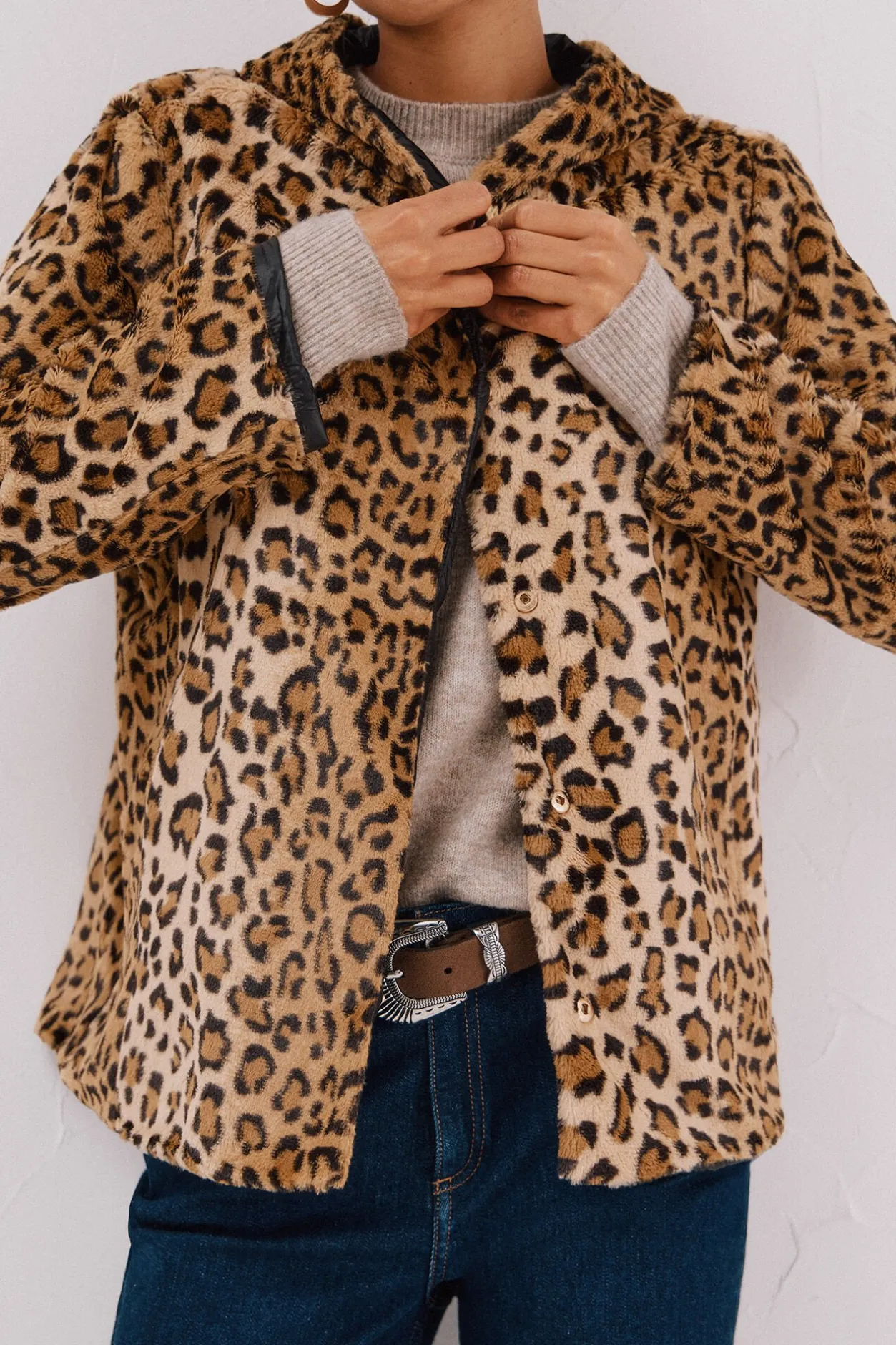 – Combina calidad ligera de efecto pelo y tejido técnico.