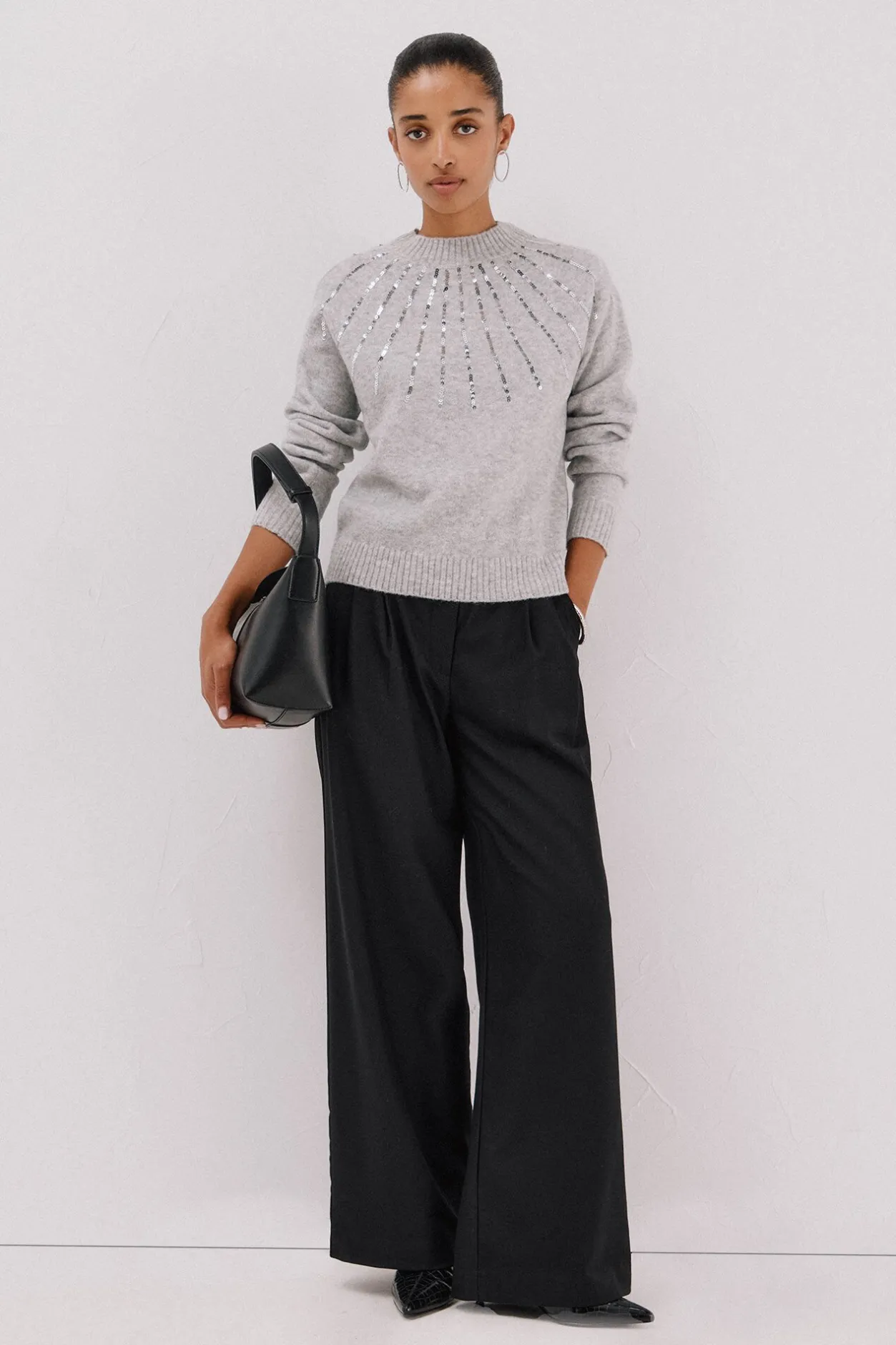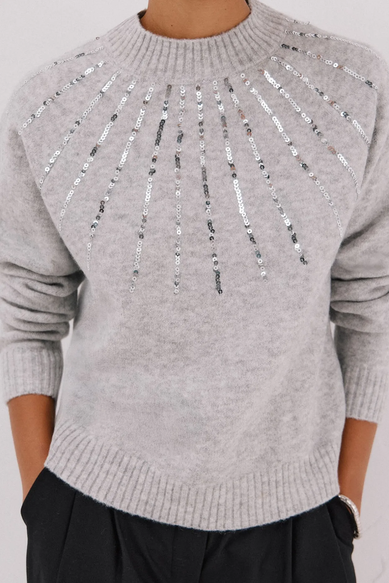 Cortefiel Jersey delantero lentejuelas. Gris Discount
