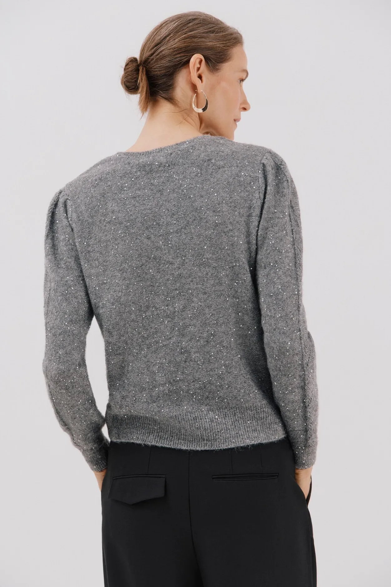 Cortefiel Jersey punto lentejuelas Gris