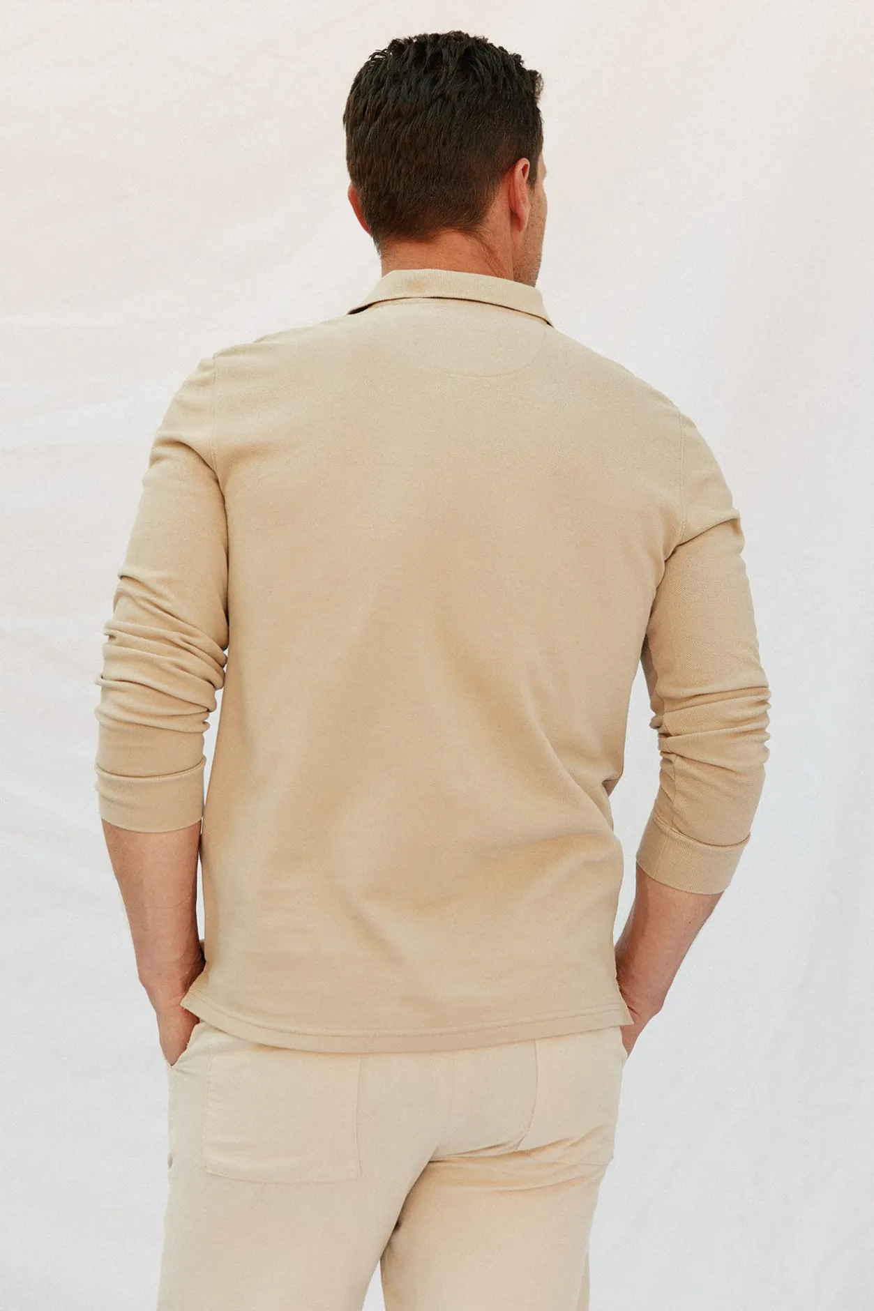 -Manga larga, tapeta con botones y logo bordado en el pecho