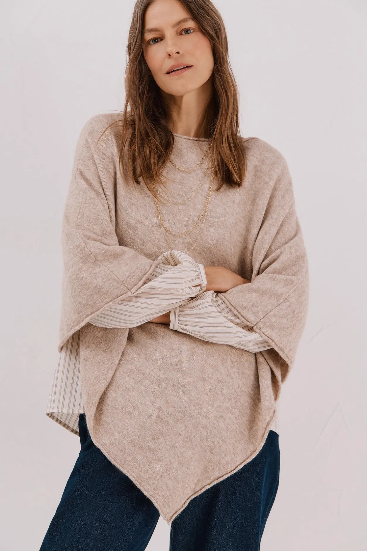 Cortefiel Poncho tacto suave Beige Online