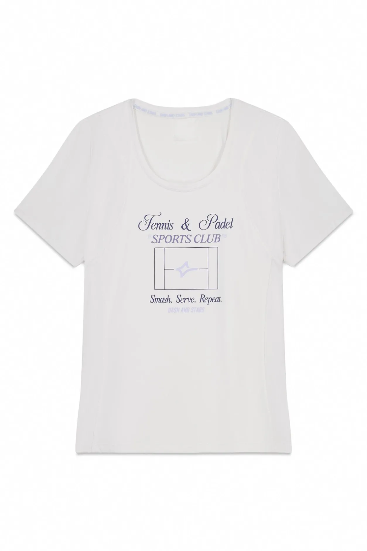 – Escote redondo y detalle de estampado en el delantero.