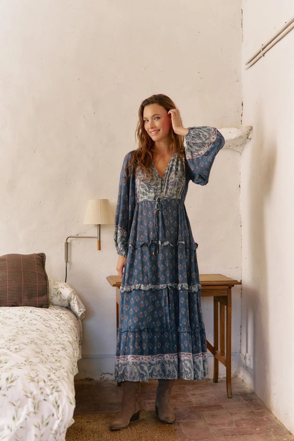 Jaase Vestido largo Luciana estampado Nico Azul Sale